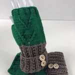 Mitaines avec pouce Laine Tricoté Main Réf 5370 Qualité Acrylique Couleur Vert/Beige Taille M Modèle Unique