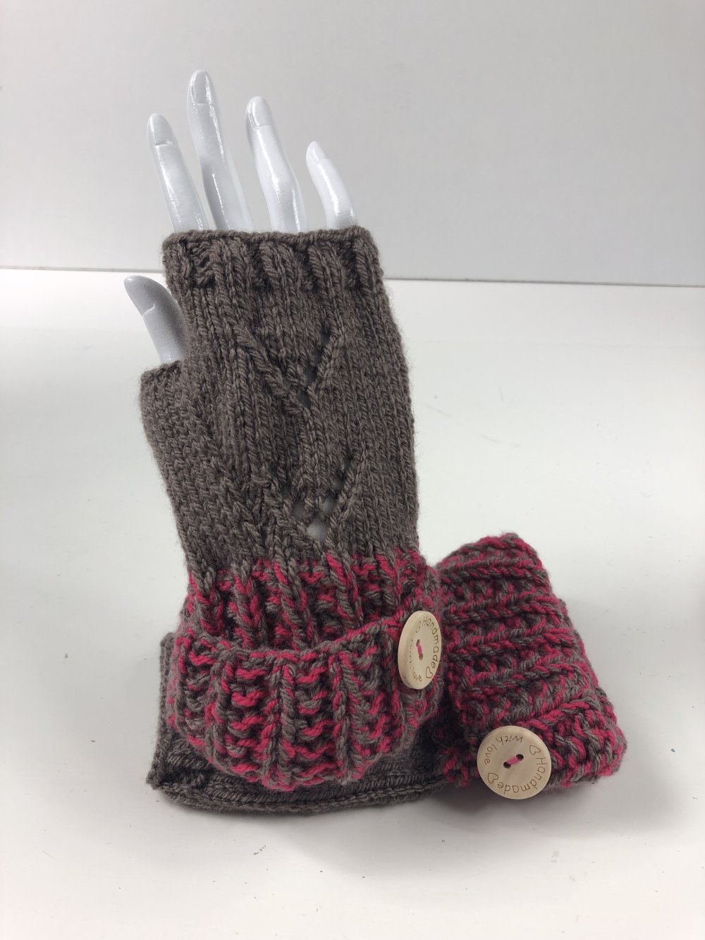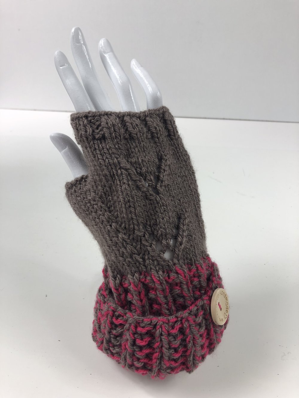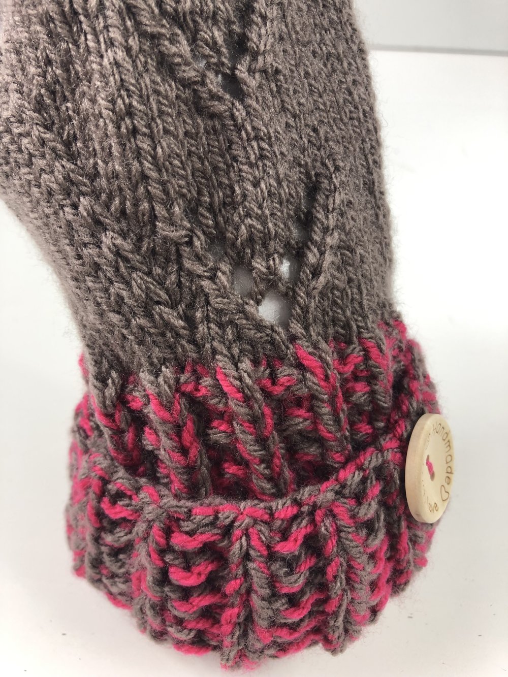 Mitaines avec pouce Tricoté Main Réf 5388 Qualité Acrylique Couleur Beige et Chiné Beige/Rose Taille M Modèle Unique