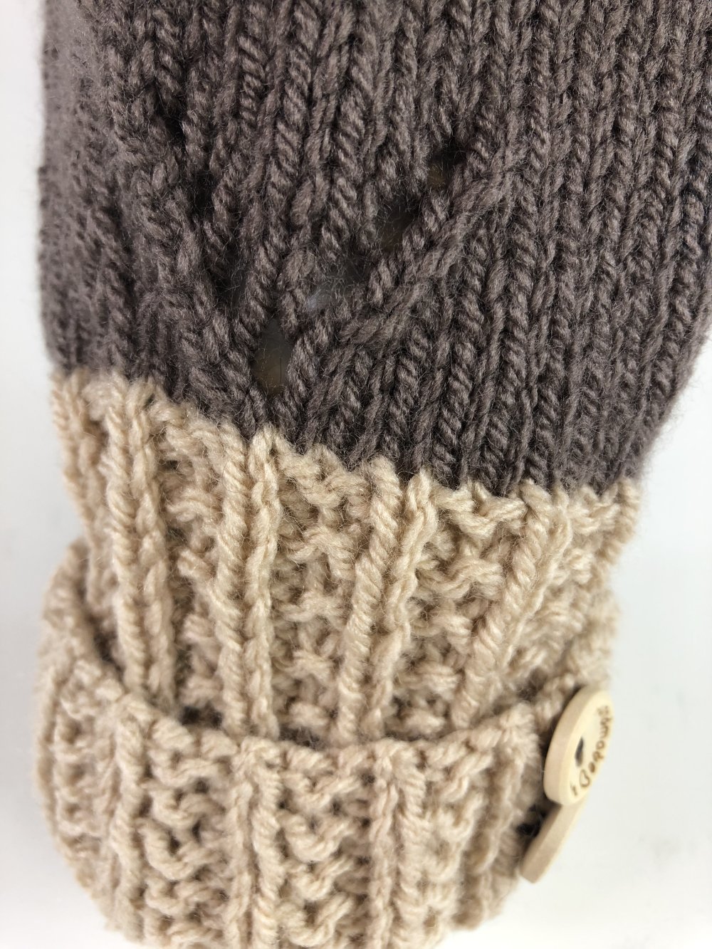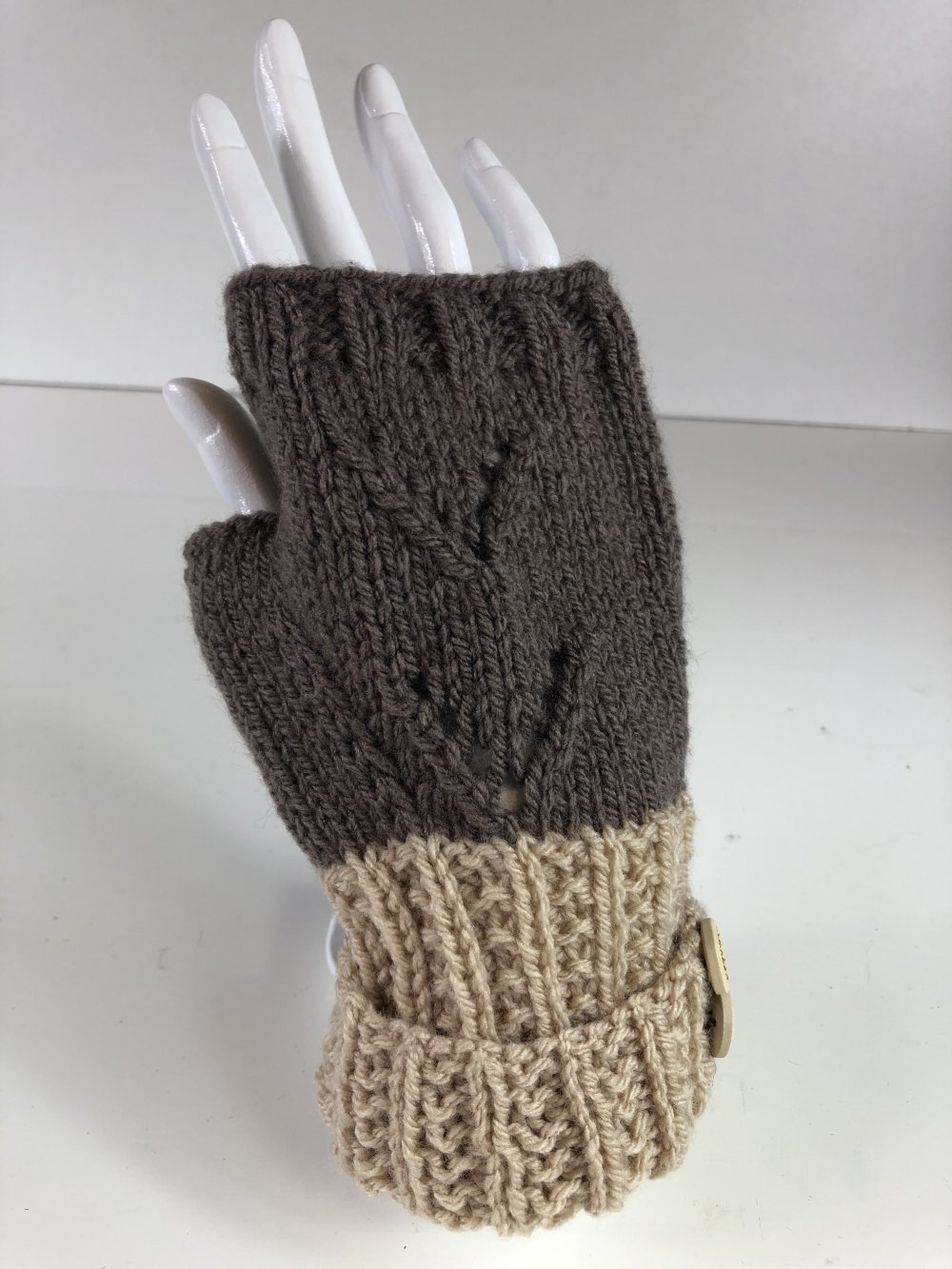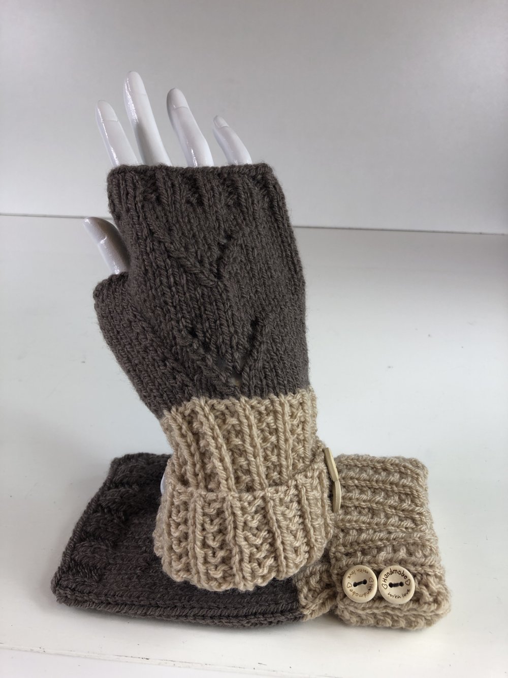 Mitaines avec pouce Laine Tricoté Main Réf 5512 Qualité Acrylique Couleur Beige Foncé et Beige Clair Taille M Modèle Unique