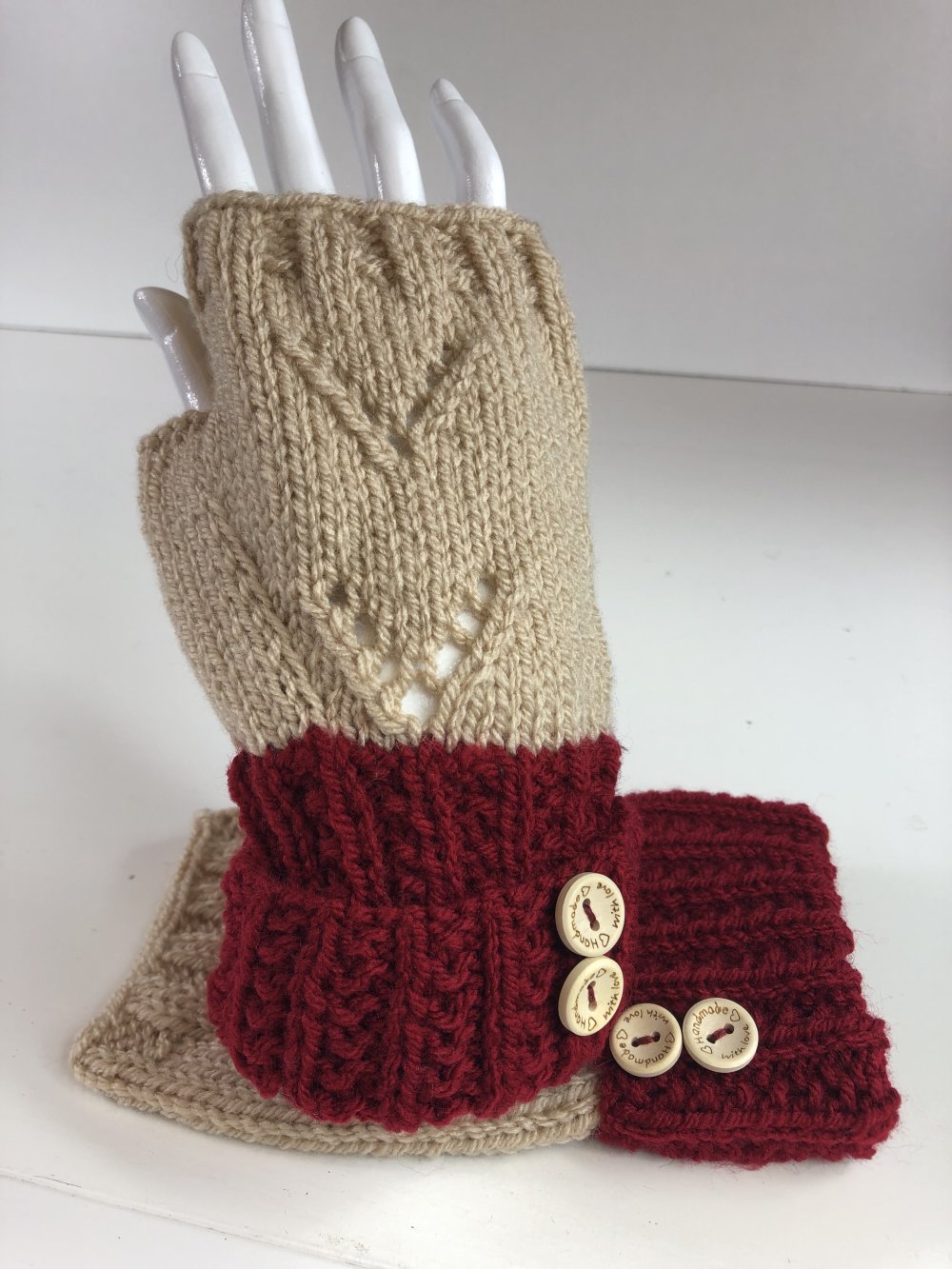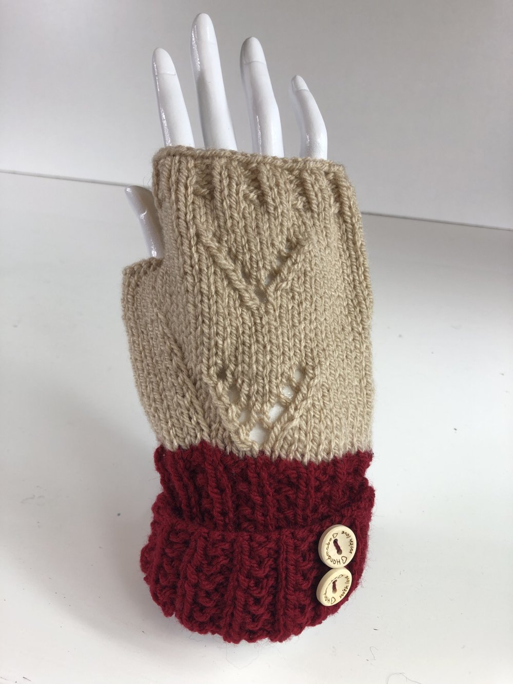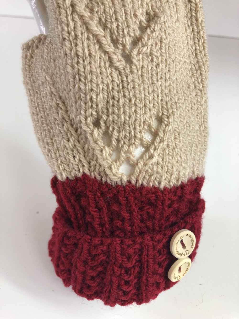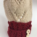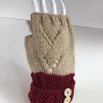 Mitaines avec pouce Laine Tricoté Main Réf 5524 Qualité Acrylique Couleur Beige/Rouge Taille M Modèle Unique