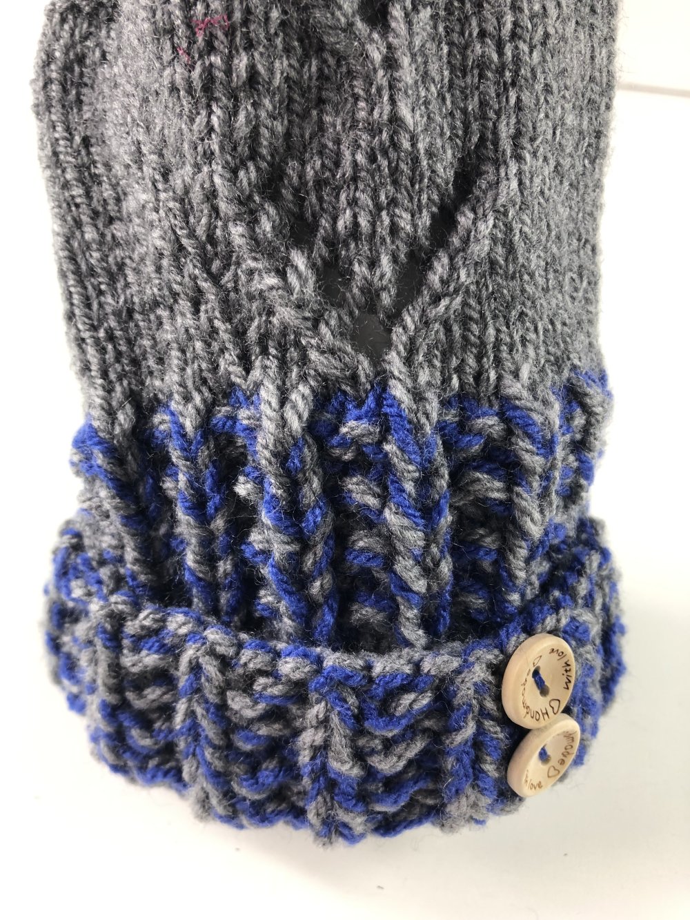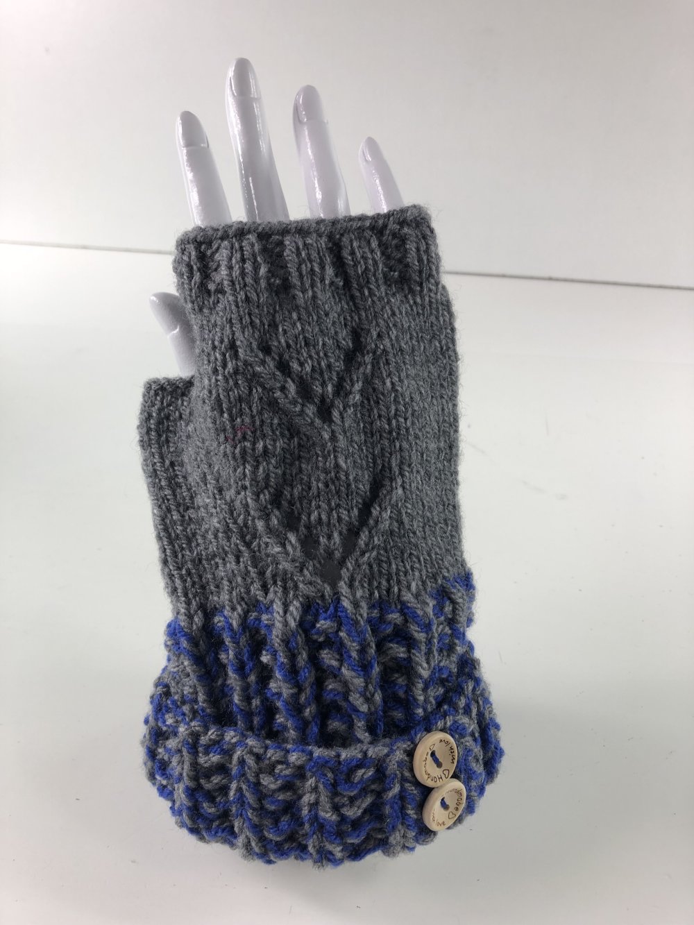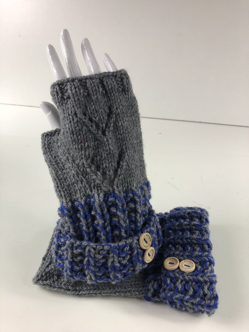 Mitaines avec pouce Laine Tricoté Main Réf 5644 Qualité Acrylique Couleur Gris et Chiné Gris /Bleu Taille M Modèle Unique