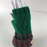 Mitaines avec pouce Laine Tricoté Main Réf 5665 Qualité Acrylique Couleur Vert et Chiné Vert/Rose Taille M Modèle Unique