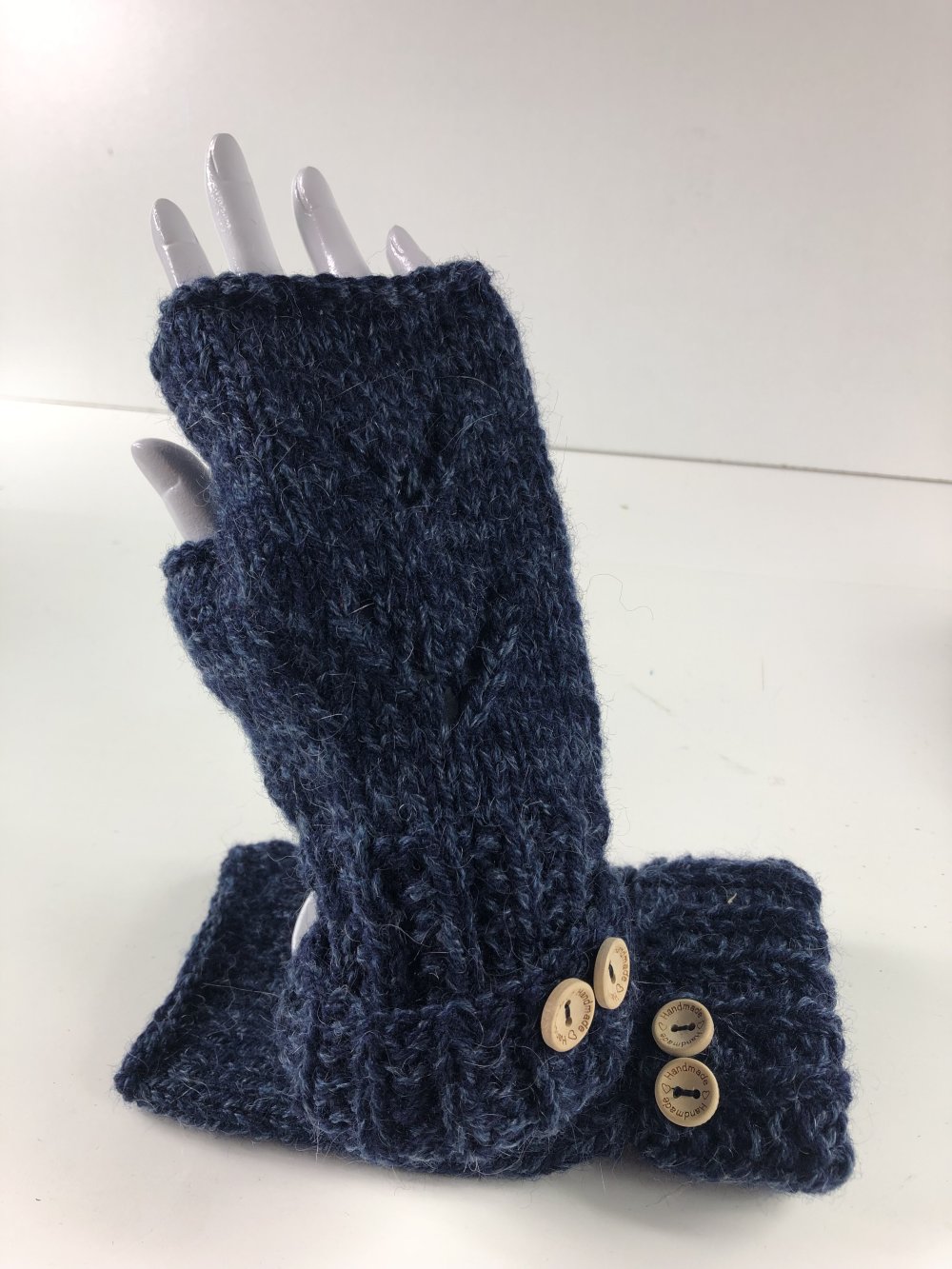 Mitaines avec pouce laine Tricoté Main Réf 5773 Qualité Acrylique/Laine Couleur Chiné Marine/Bleu Taille M Modèle Unique