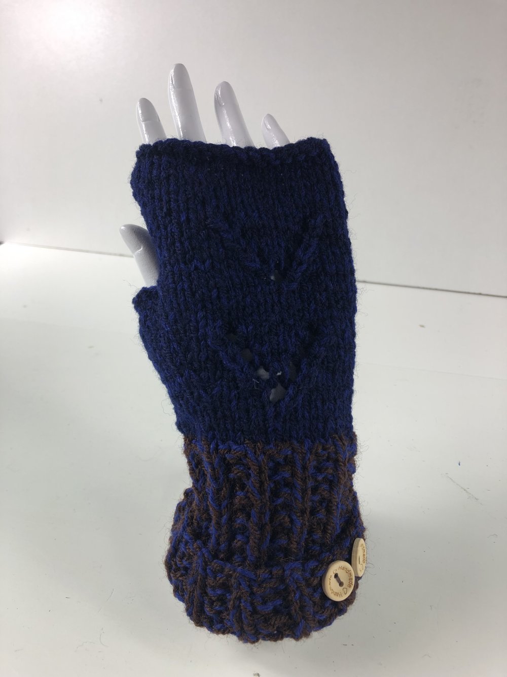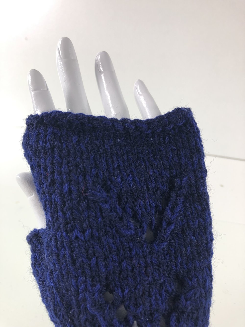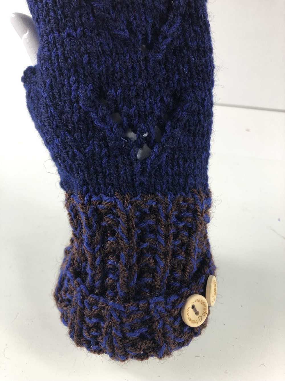 Mitaines avec pouce Laine Tricoté Main Réf 5821 Qualité Acrylique Couleur Marine et Chiné Marine/Bleu Taille L Modèle Unique