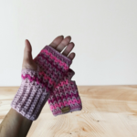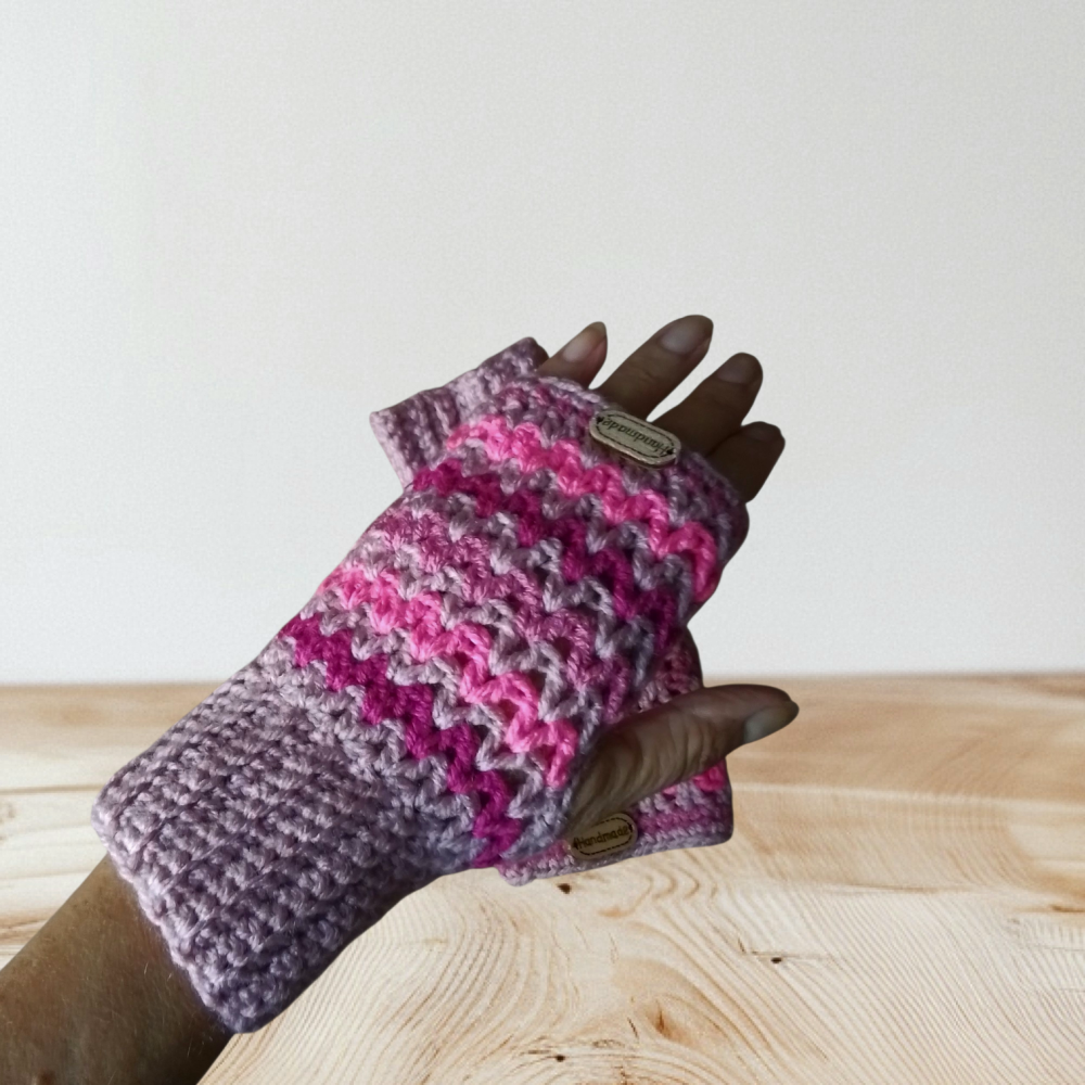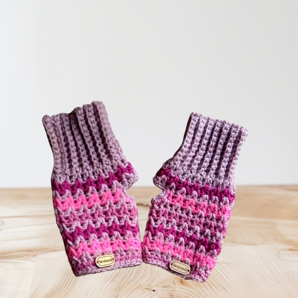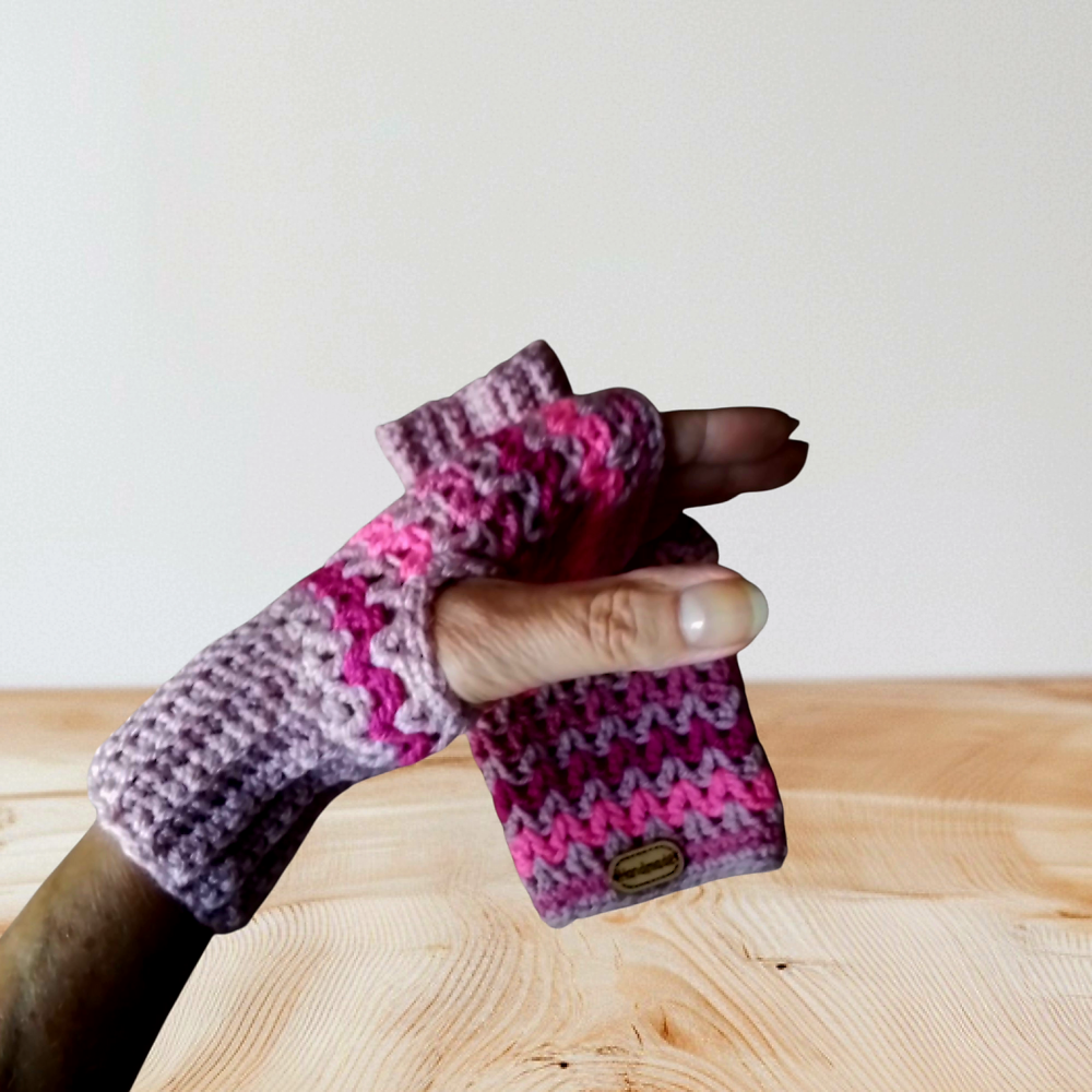 Joli mitaines multicolore rose d'hiver femme en laine crochetées main dans les tons de rose.