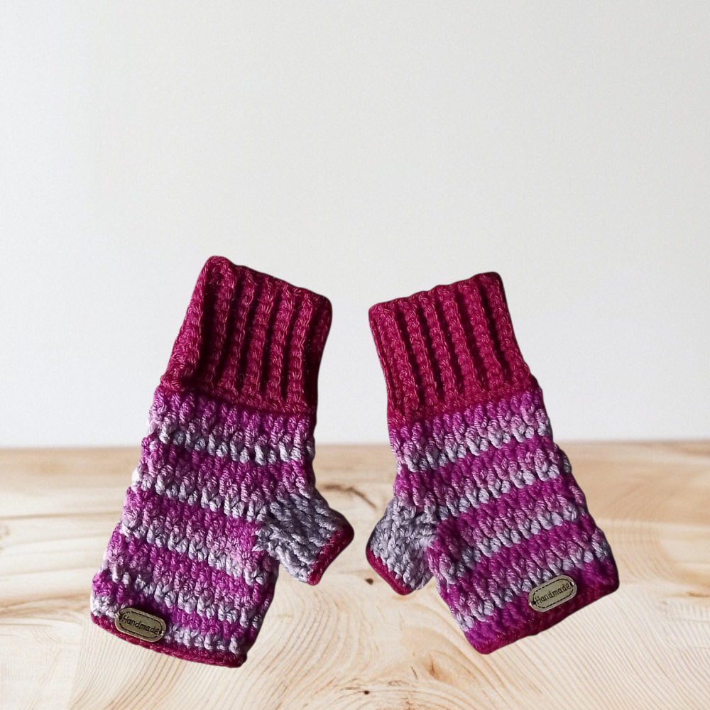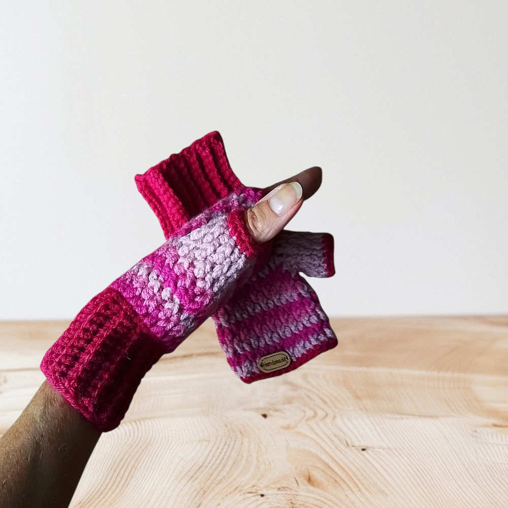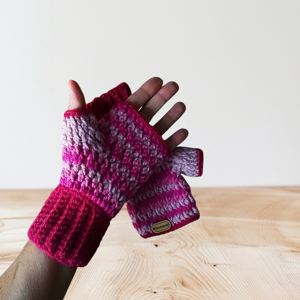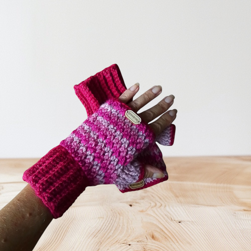 Je vends ces mitaines d'hiver femme en laine crochetées main dans les tons de rose.