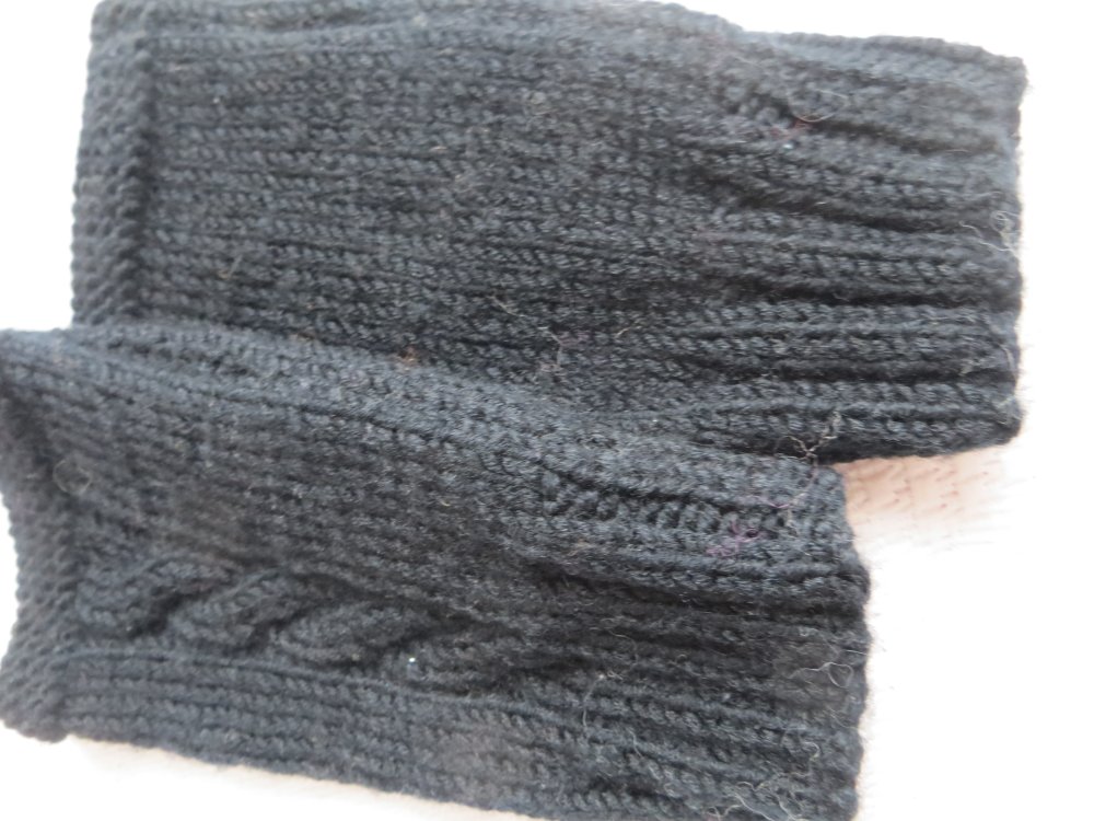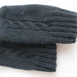 Mitaines noires tricotées main ,avec torsades,Hauteur 17cm,largeur ,pour un tour de main de 22cm environ