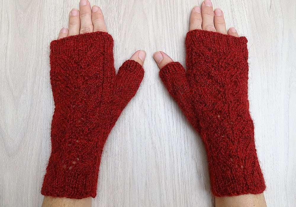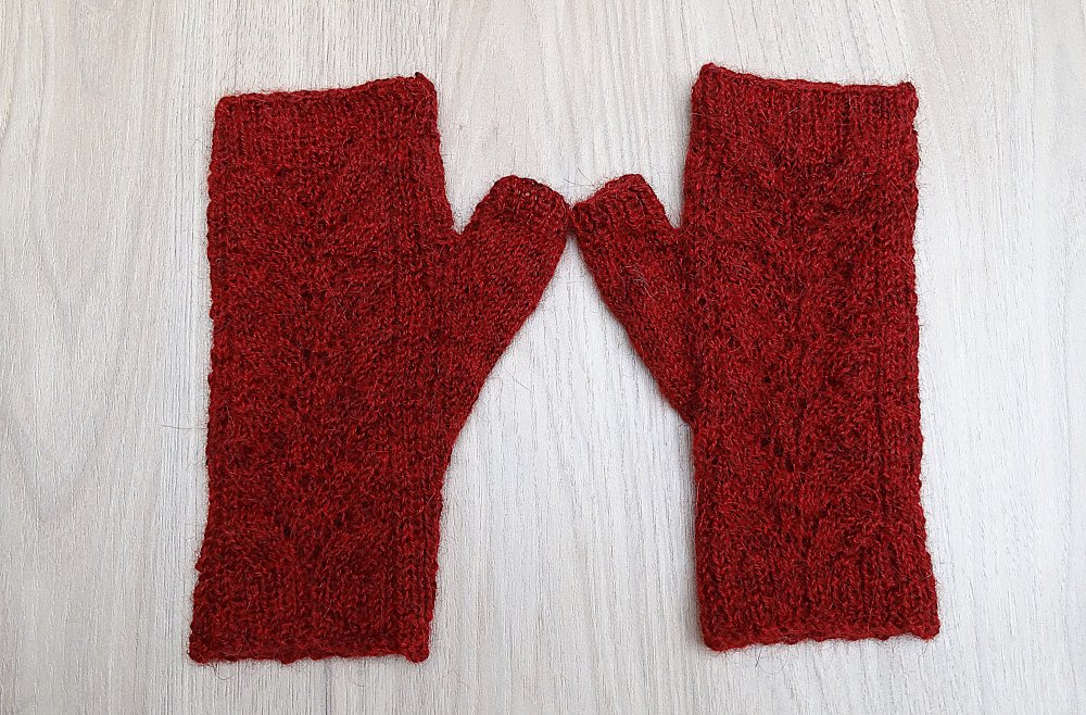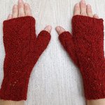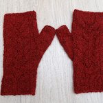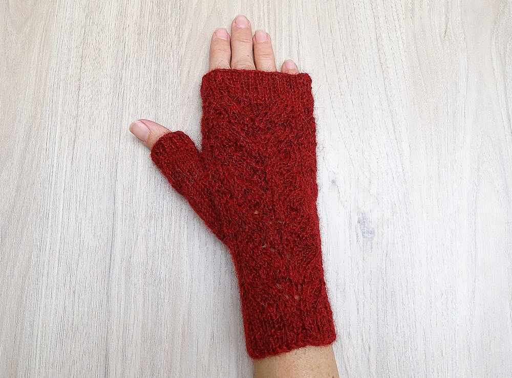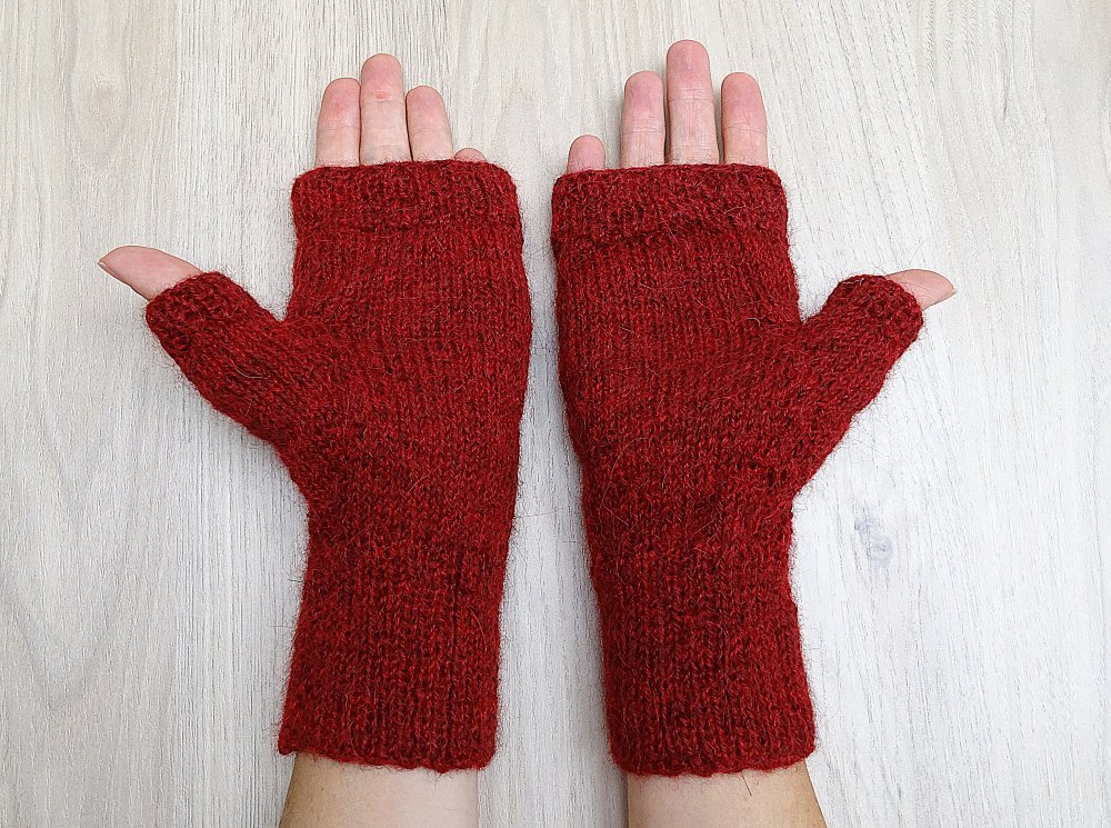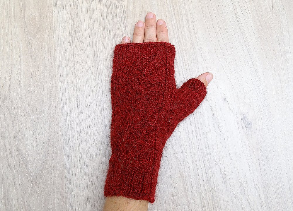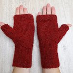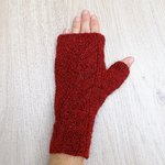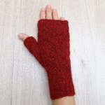 Mitaines femme rouge bordeaux en laine alpaga tricotées main.