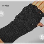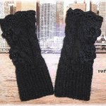 mitaines en laine,mitaines noir +dentelle au crochet ) en laine .taille adulte