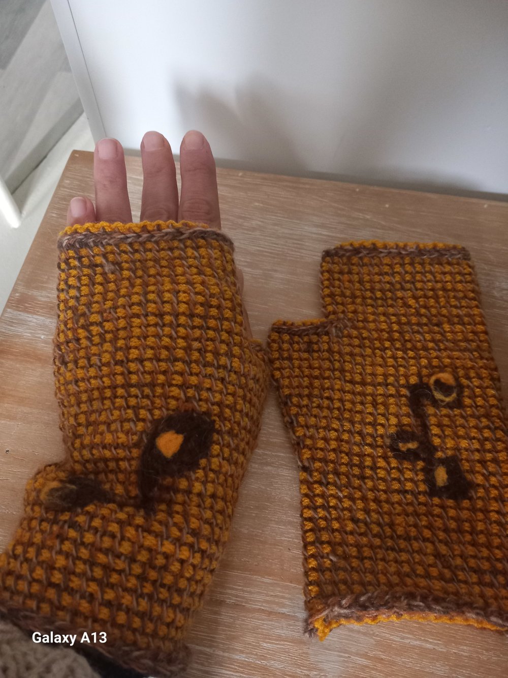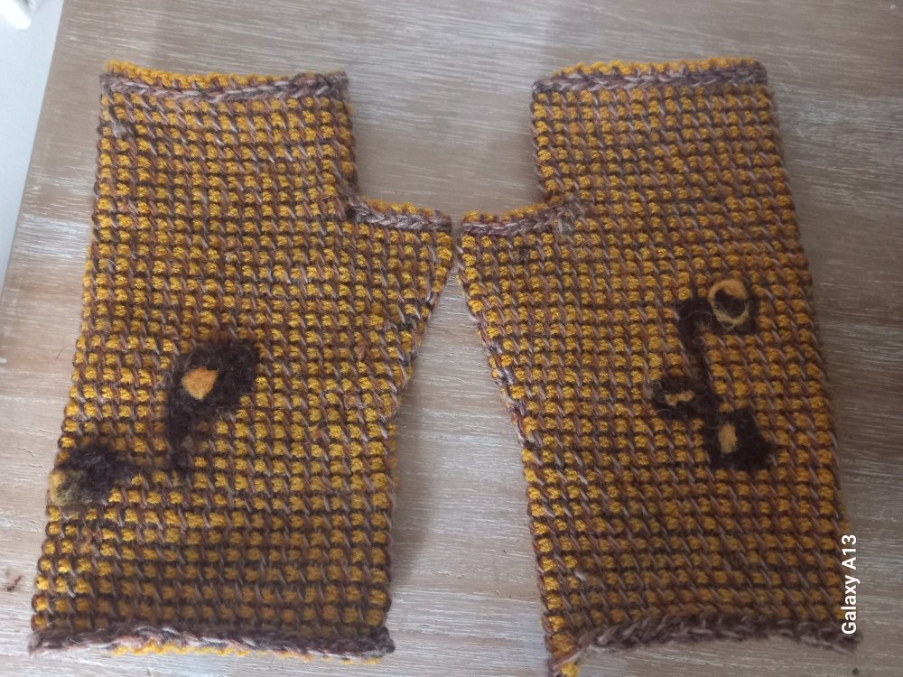 Réalisées avec 2 fil de laine recyclé ♻️ motifs abstraits en laine feutrée.
