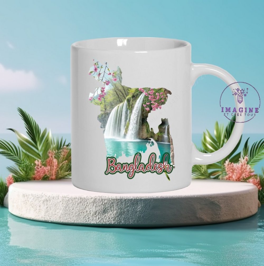 Mug - tasse - sublimation - bangladesh - cascade de madhabkund - carte - pont de bangabandhu