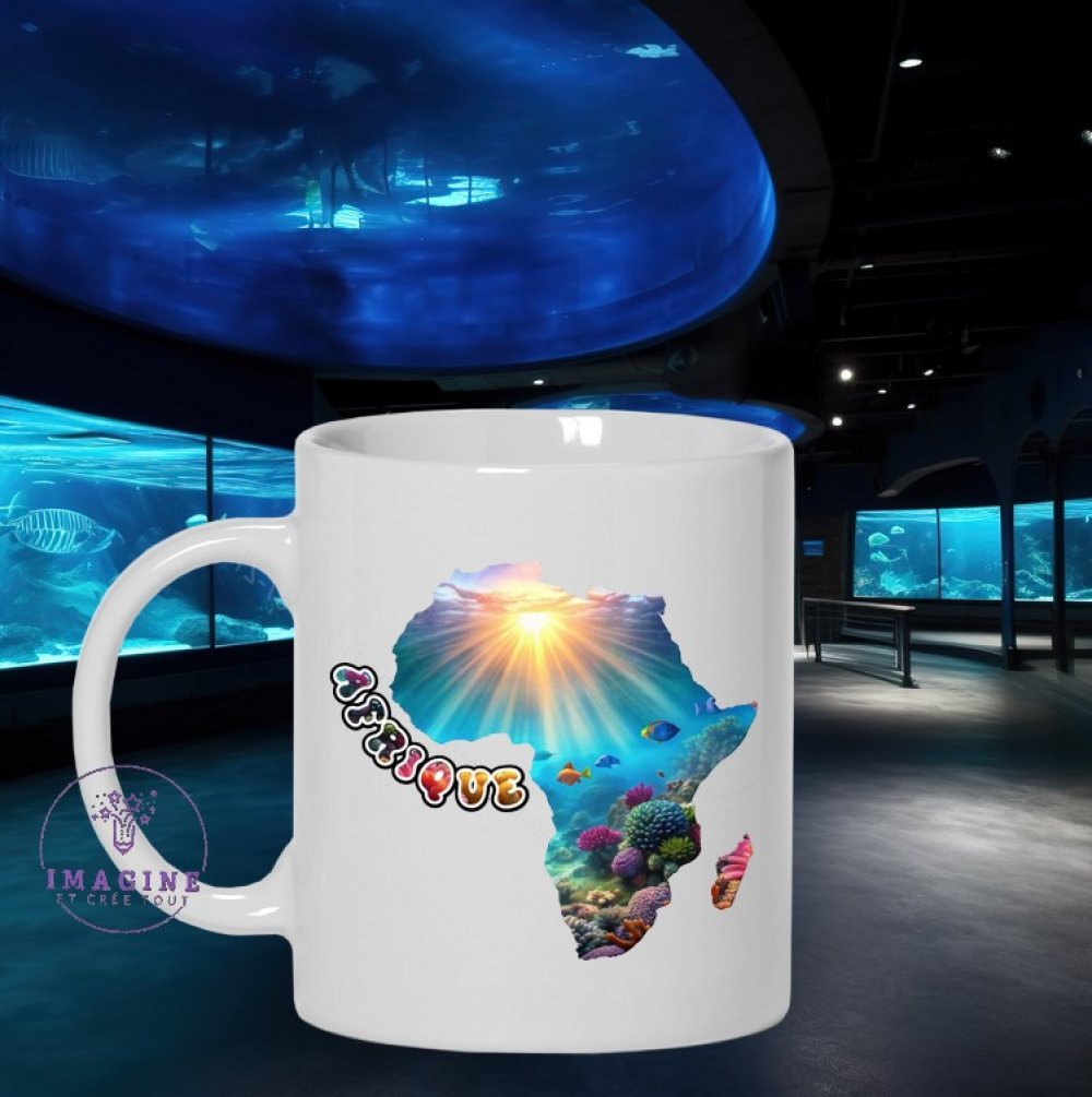 Mug - tasse - sublimation - carte afrique - fond marin - continent - savane - baobab - Cameroun - Kenya