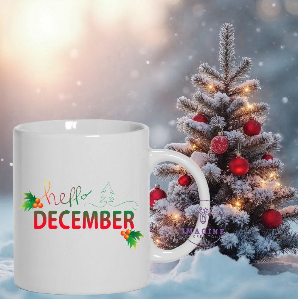 Mug - tasse - sublimation - impression infusible ink - hello december - bonjour décembre - lettering - lettres - texte - noël