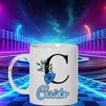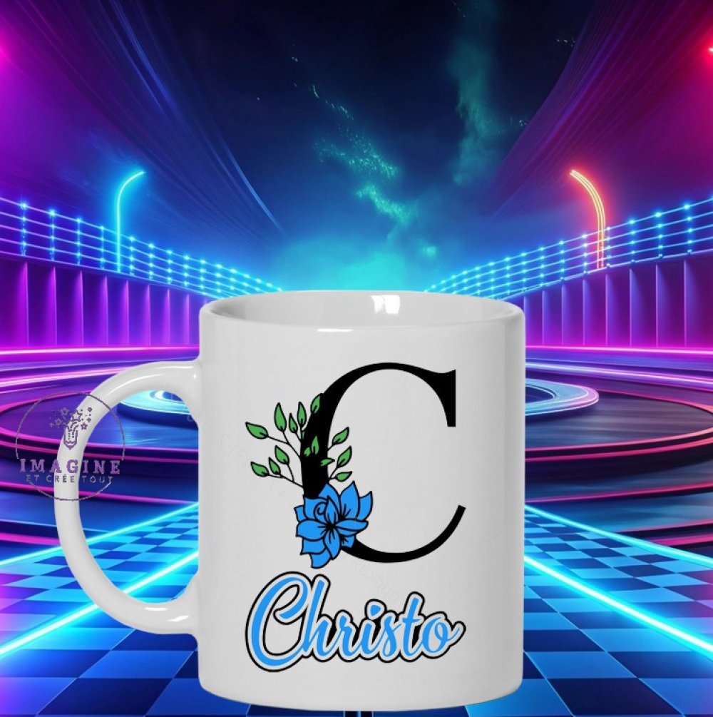 Mug - tasse - sublimation - initiale - prénom - fleurs - bleues - surnom - personnalisation - mixte