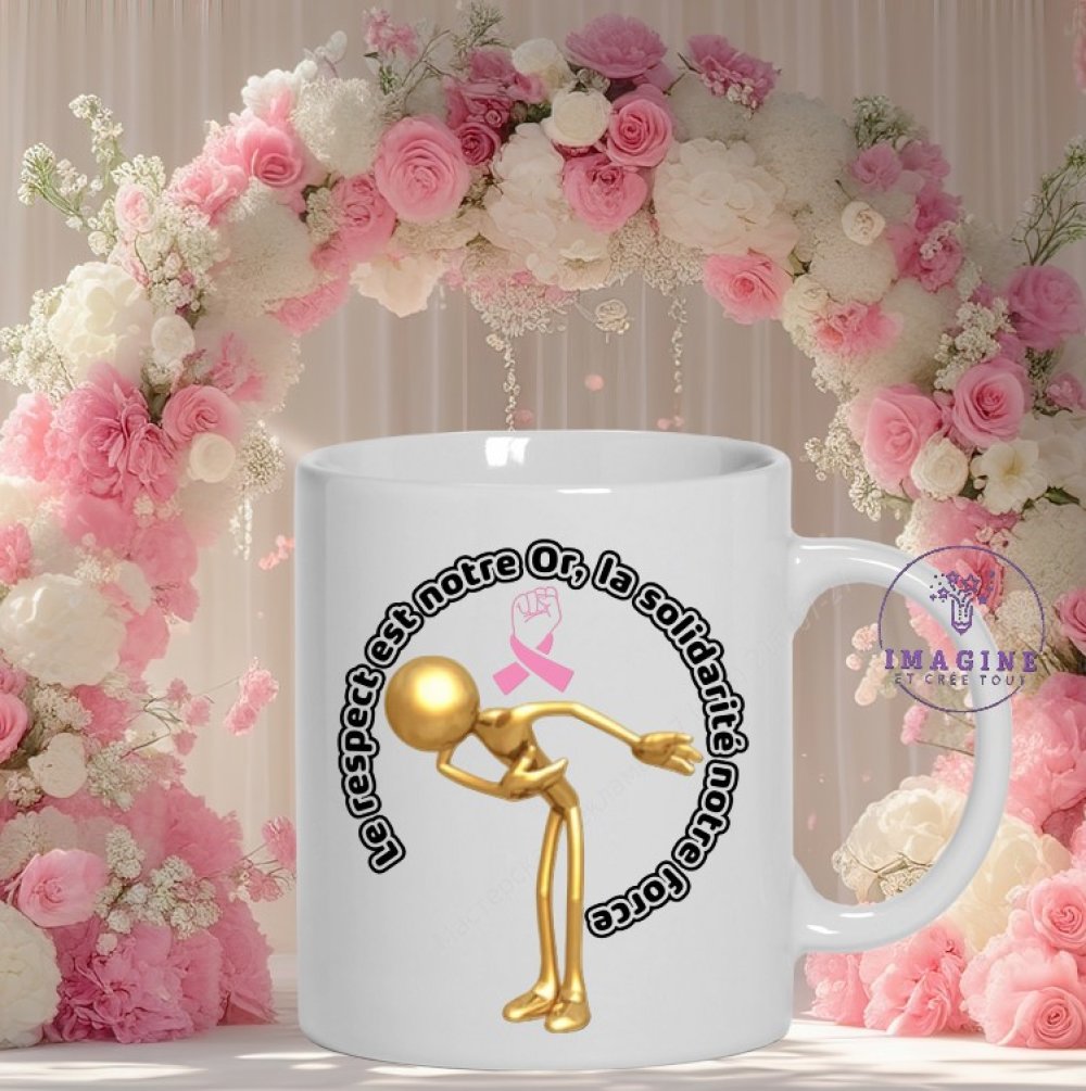 Mug - tasse - sublimation - solidarité - respect - or - ruban rose - force - octobre - combat - prévention - espoir - hope
