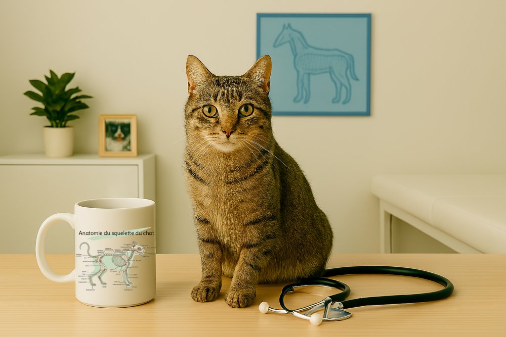 Tasse en porelaine thème anatomie du chat. Cadeau idéal pour remercier votre vétérinaire ou encourager un étudiant véto