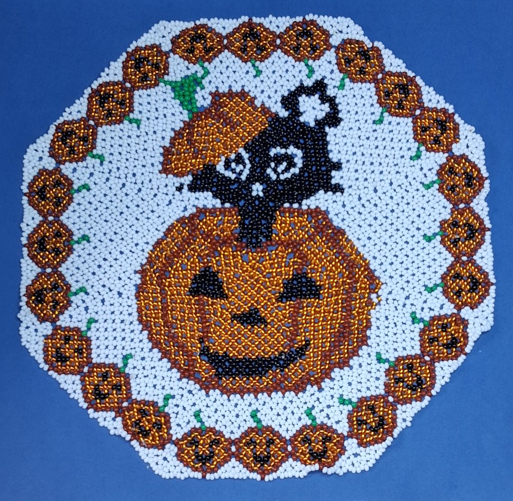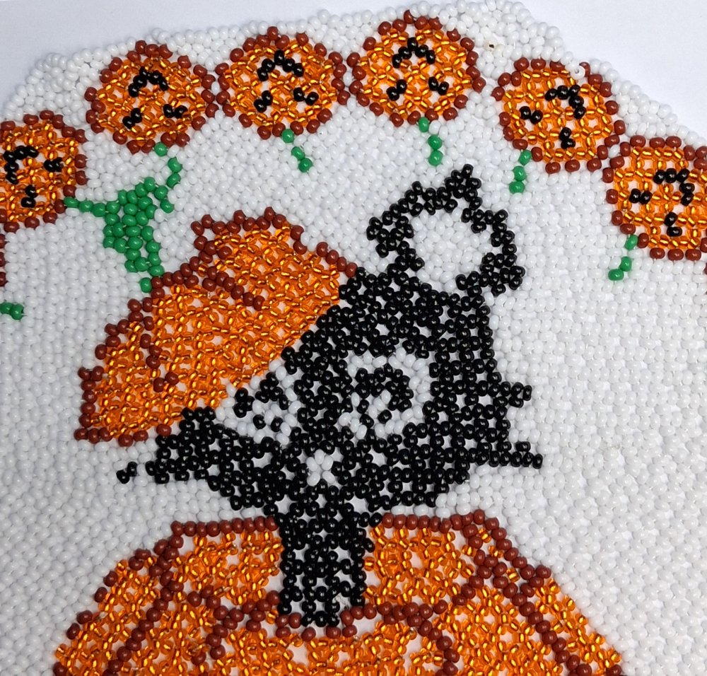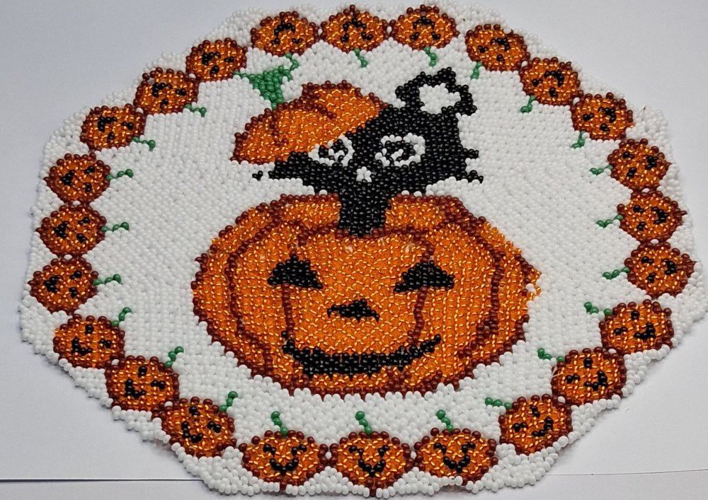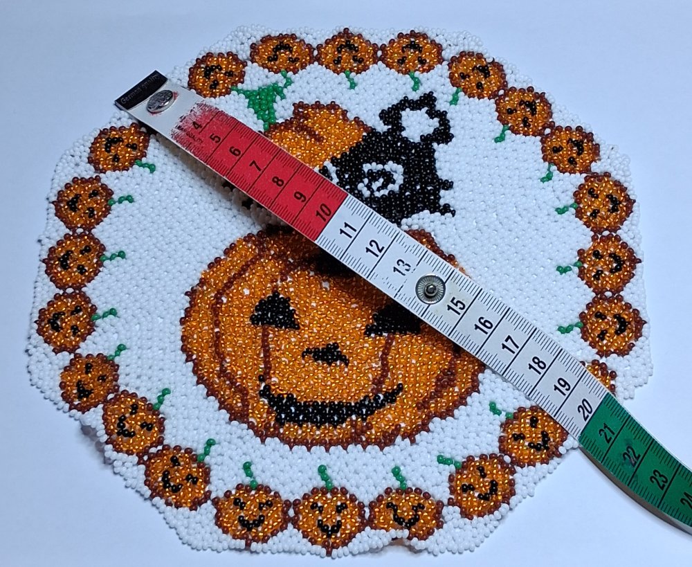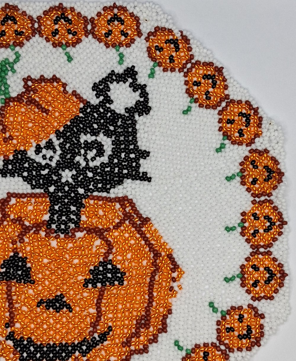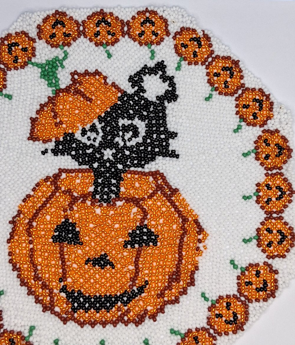 Napperon décoratif entièrement réalisé à la main avec des perles de rocaille en verre.