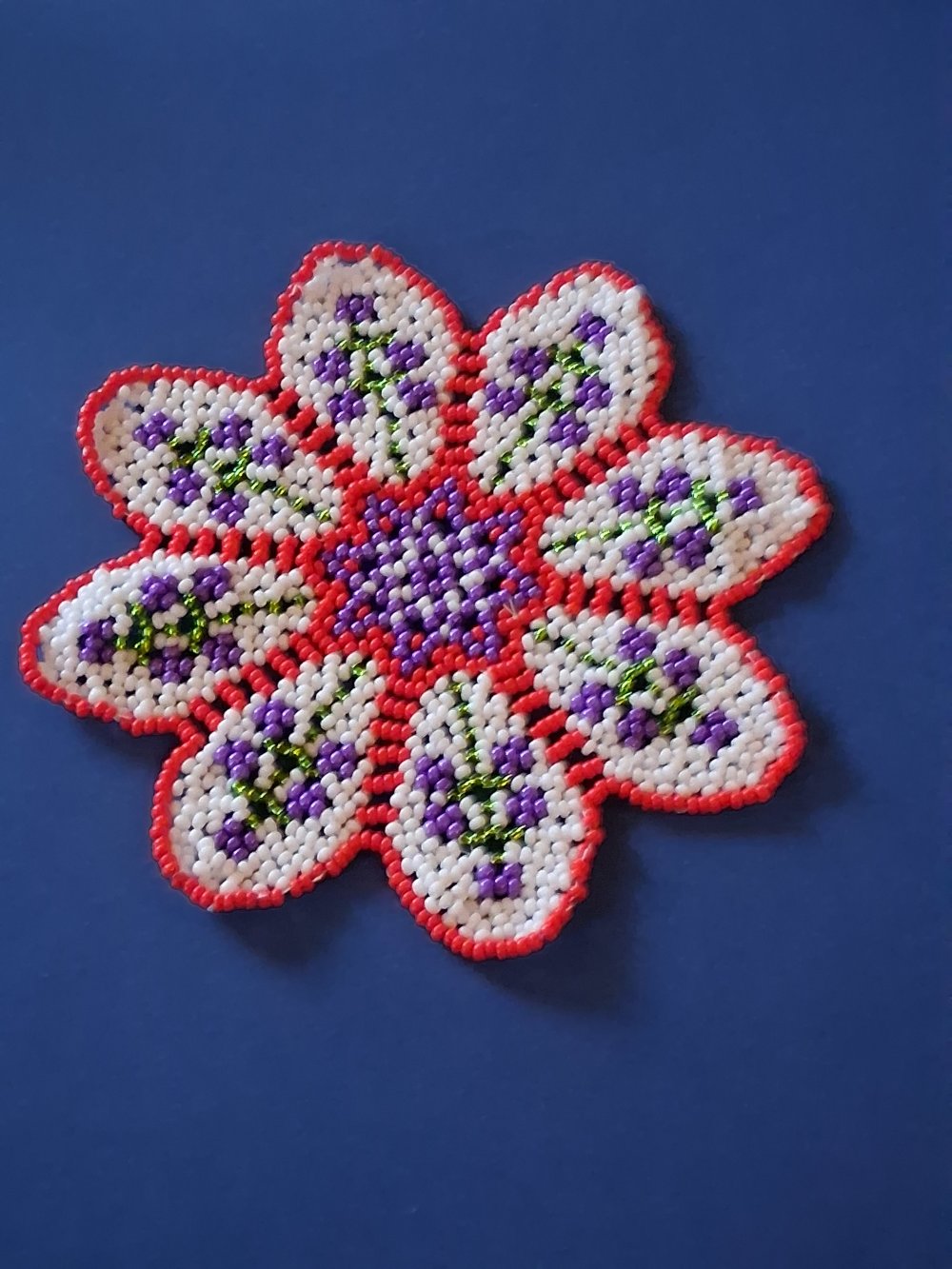 Napperon petite fleur violette réalisé à l'aide de mes perles.