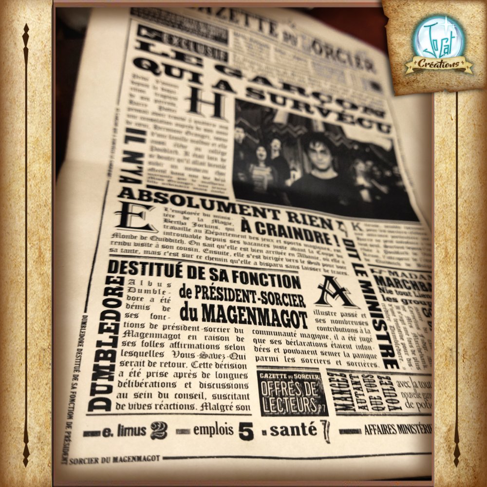 Choisissez parmi : les avis de recherche de Sirius Black, de Harry Potter, les pages de la Gazette du sorcier ; le tout en français entièrement lisible (vous pourrez même résoudre les mots-croisés sorcier).