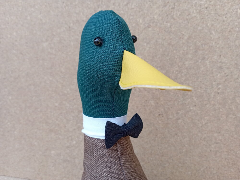 *** Le canard : Ce canard colvert est vendu SANS ACCESSOIRES. Il est fabriqué en tissu marron et vert canard avec son collier en blanc.
