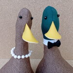 Arrêt de porte/serre-livres Cool Canard. Paire de canards colverts avec noeud papillon et collier de perles - emballé à plat - cadeau de mariage - anniversaire - couples