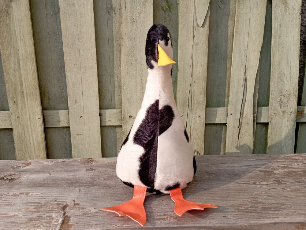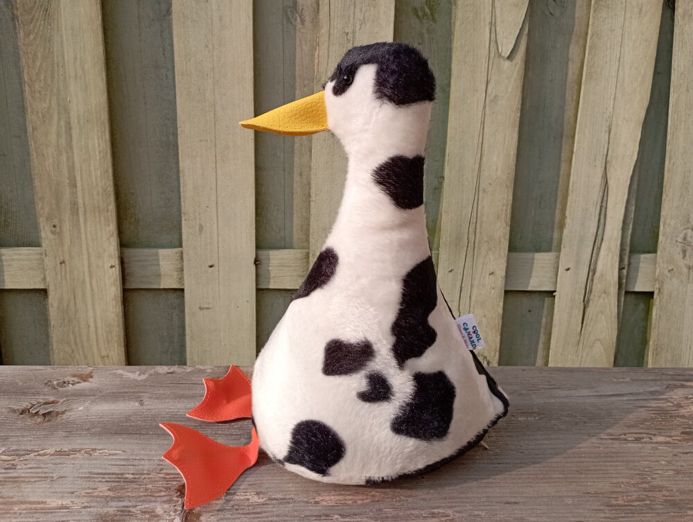 *** Le canard : Ce canard est vendu SANS ACCESSOIRES. Il est fabriqué en tissu fausse fourrure en noir et blanc, motif peau de vache