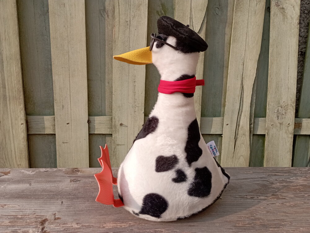 Il possède un bec en similicuir jaune, des yeux en perles noires et des pattes en similicuir orange avec des fils métalliques internes pour que vous puissiez le positionner comme vous le souhaitez !