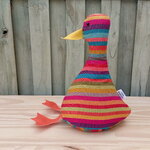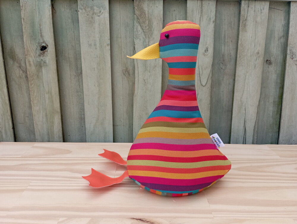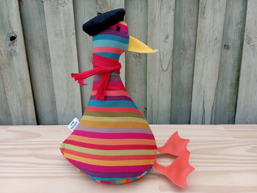 *** Le canard : Ce canard est vendu SANS ACCESSOIRES. Il est fabriqué en tissu exterieur en coton avec des rayures multicolore.