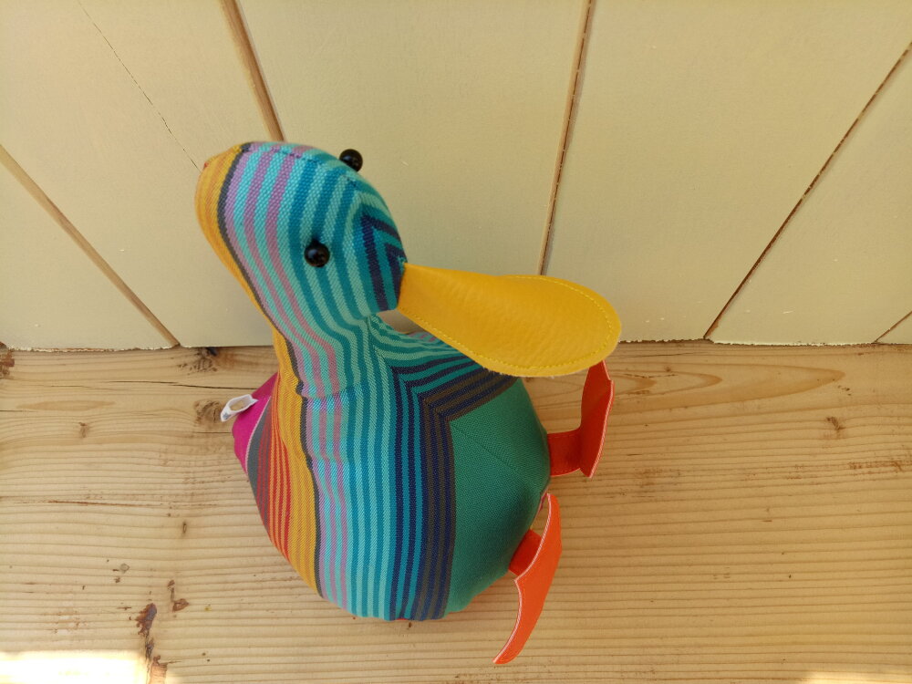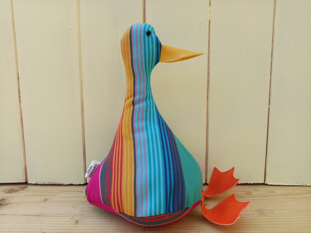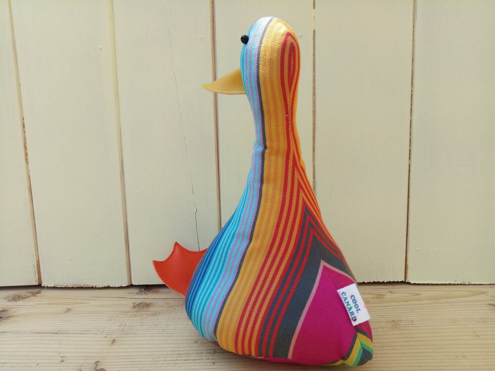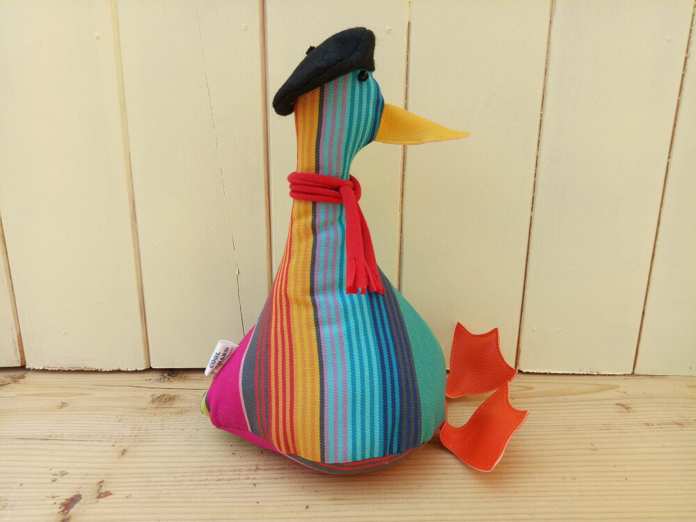 *** Le canard : Ce canard est vendu SANS ACCESSOIRES. Il est fabriqué en tissu exterieur en coton avec des rayures multicolore.