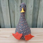 Il possède un bec en similicuir jaune, des yeux en perles noires et des pattes en similicuir orange avec des fils métalliques internes pour que vous puissiez le positionner comme vous le souhaitez !