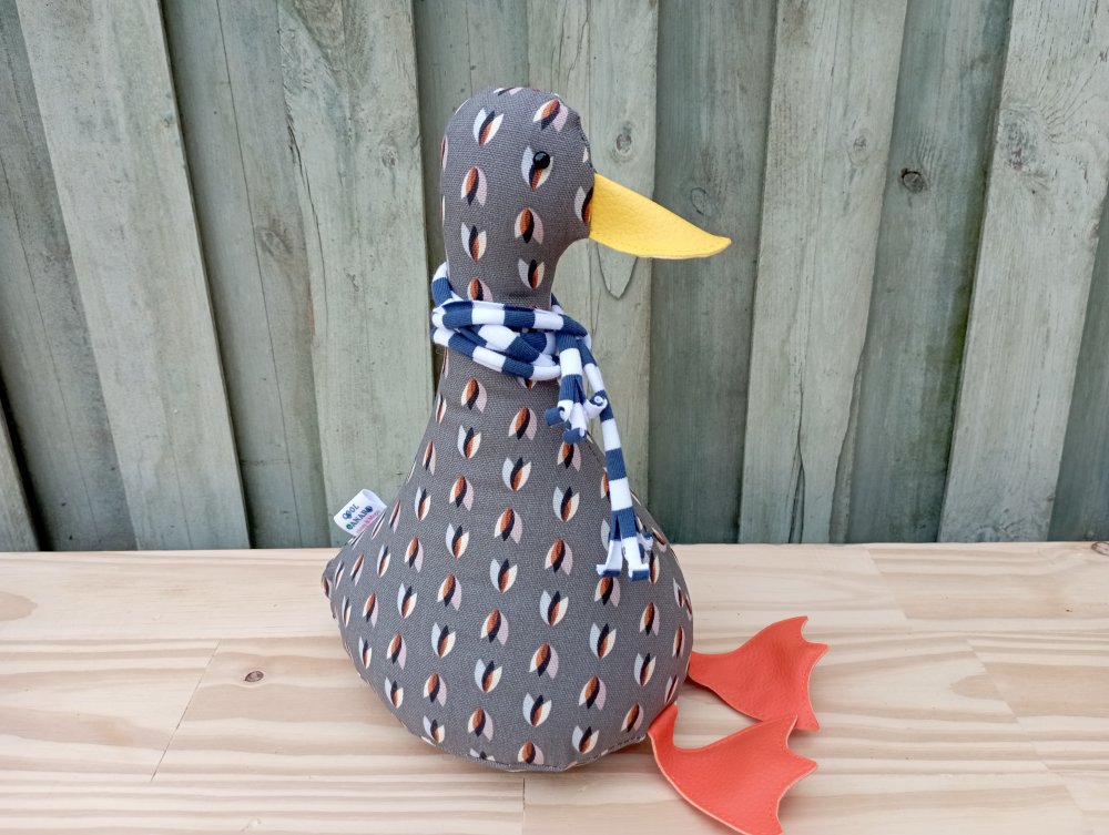 *** Le canard : Ce canard est vendu SANS ACCESSOIRES. Il est fabriqué en toile coton en gris avec un motif marron et blanc.