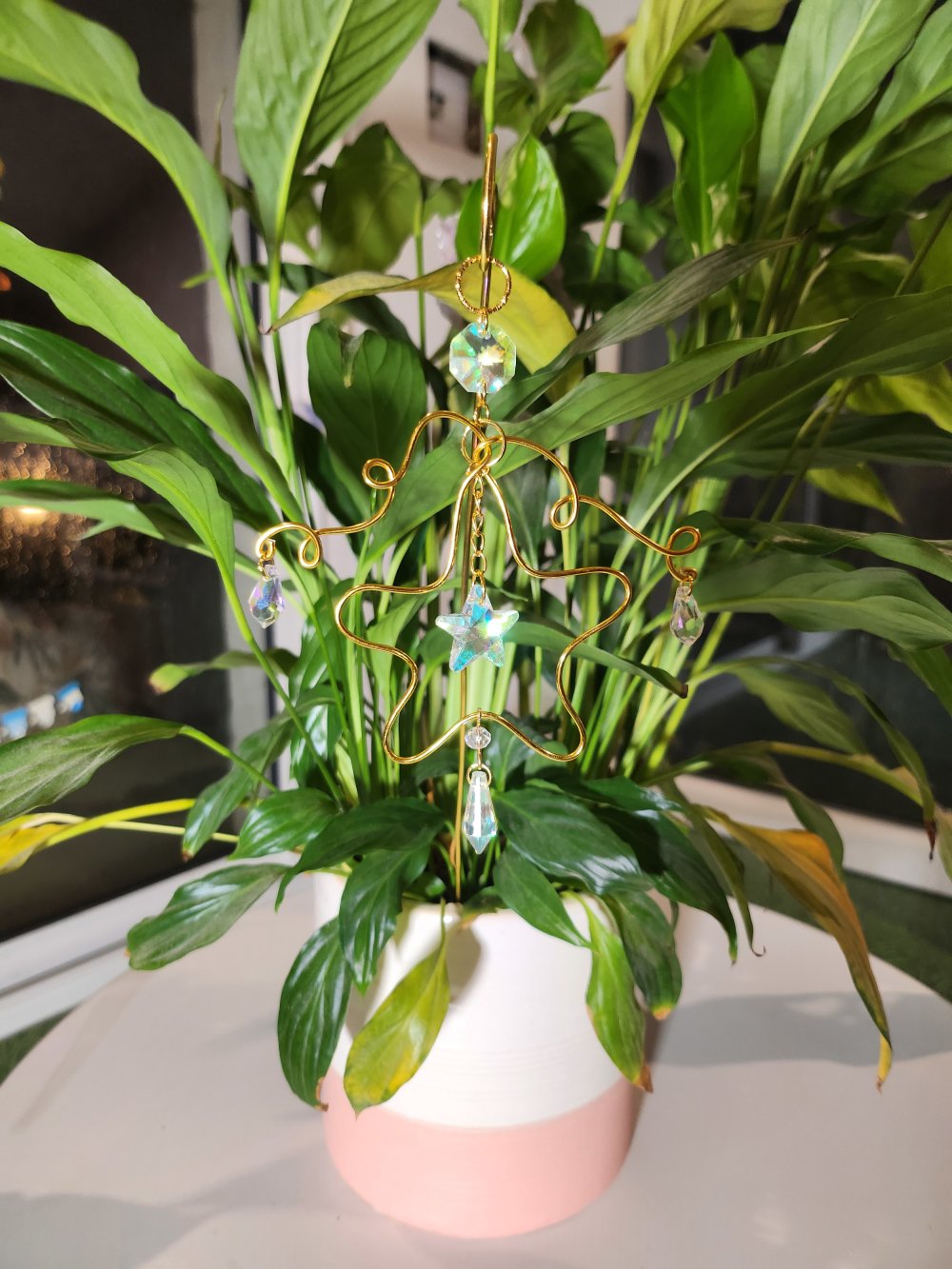 Ajoutez de l'éclat à vos fleurs avec cet attrape-soleil en fil d'aluminium doré.