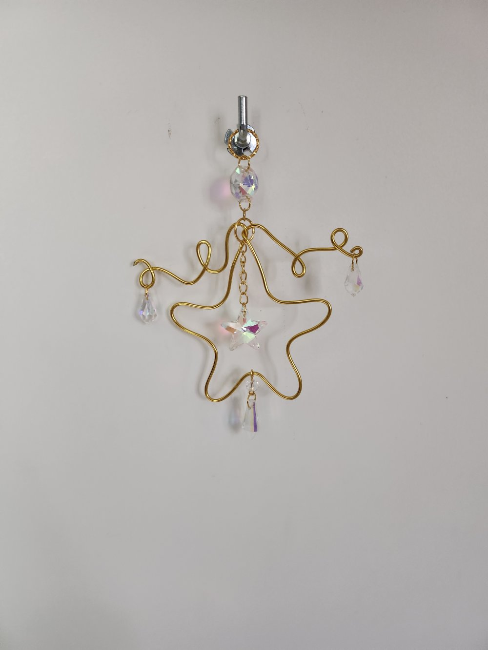 Le design en forme d'étoile parsemé de petites perles de cristal à facettes qui diffuse des arcs-en-ciel tout autour grâce aux rayons du soleil.
