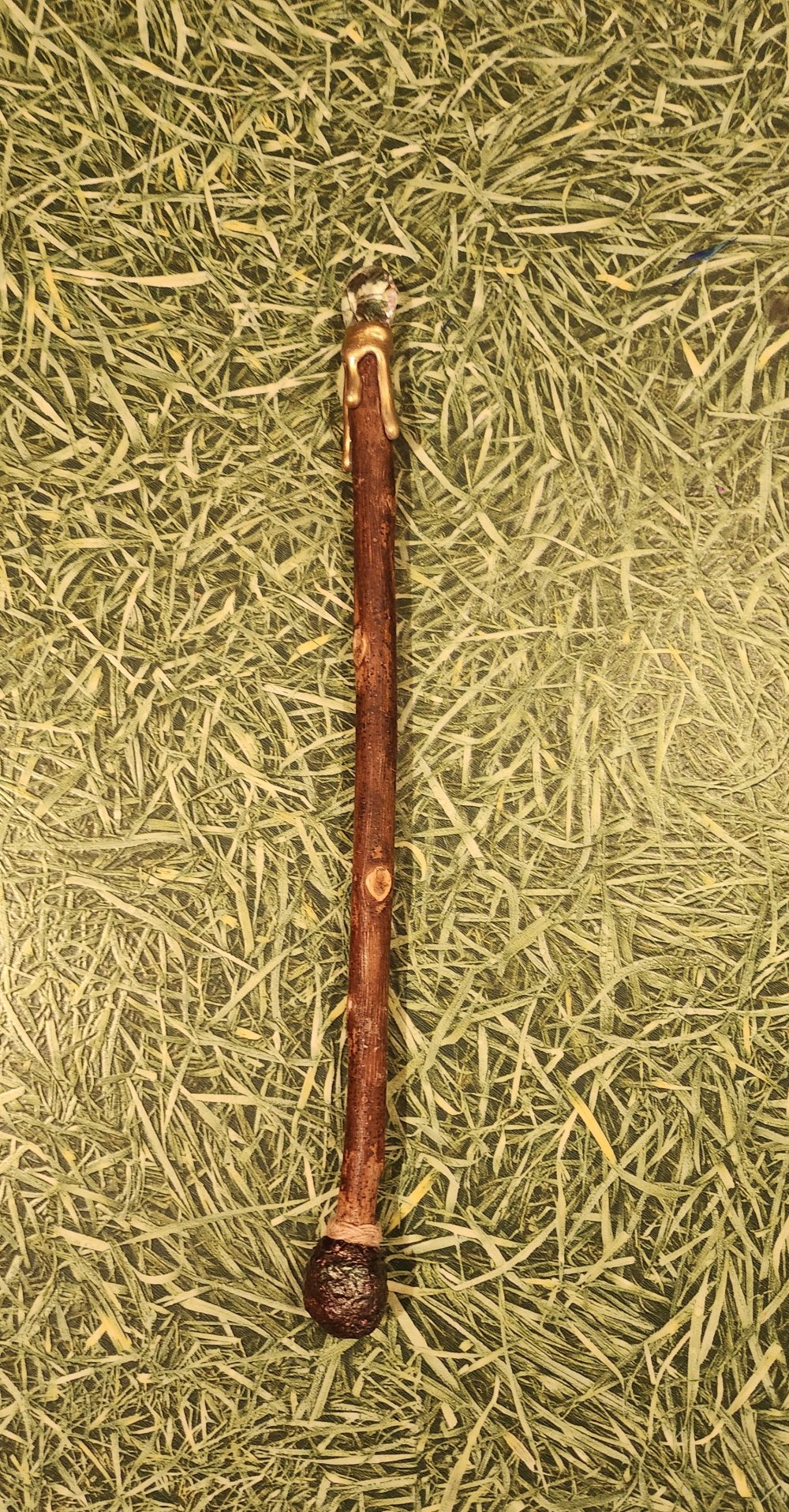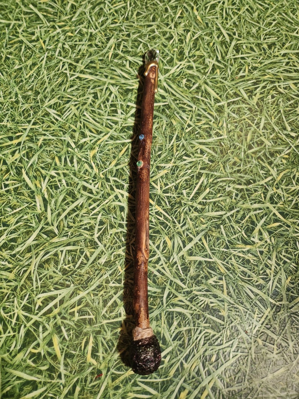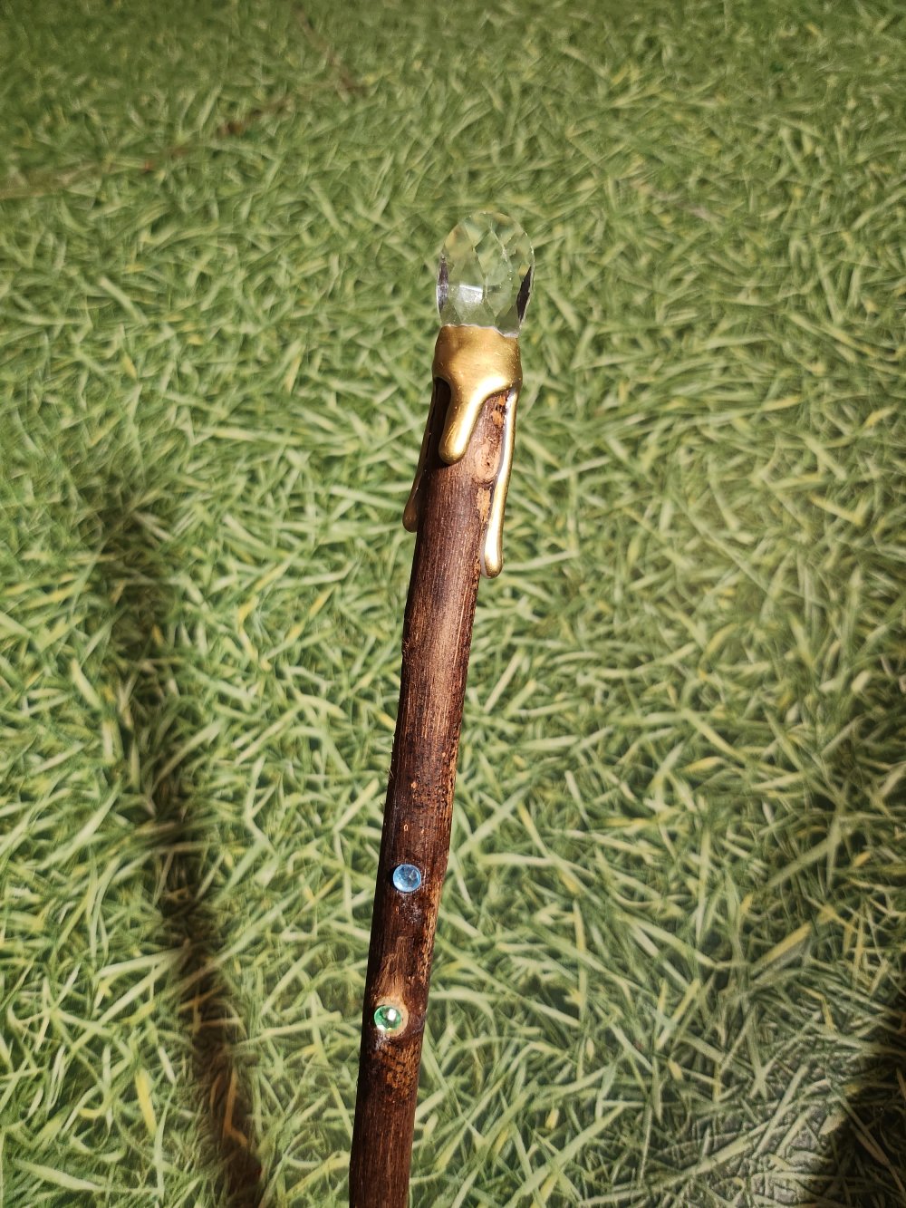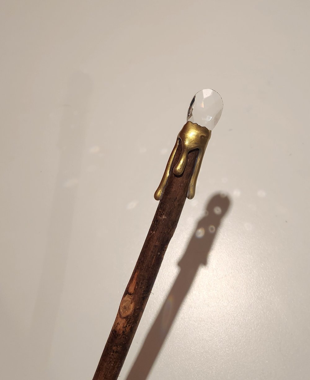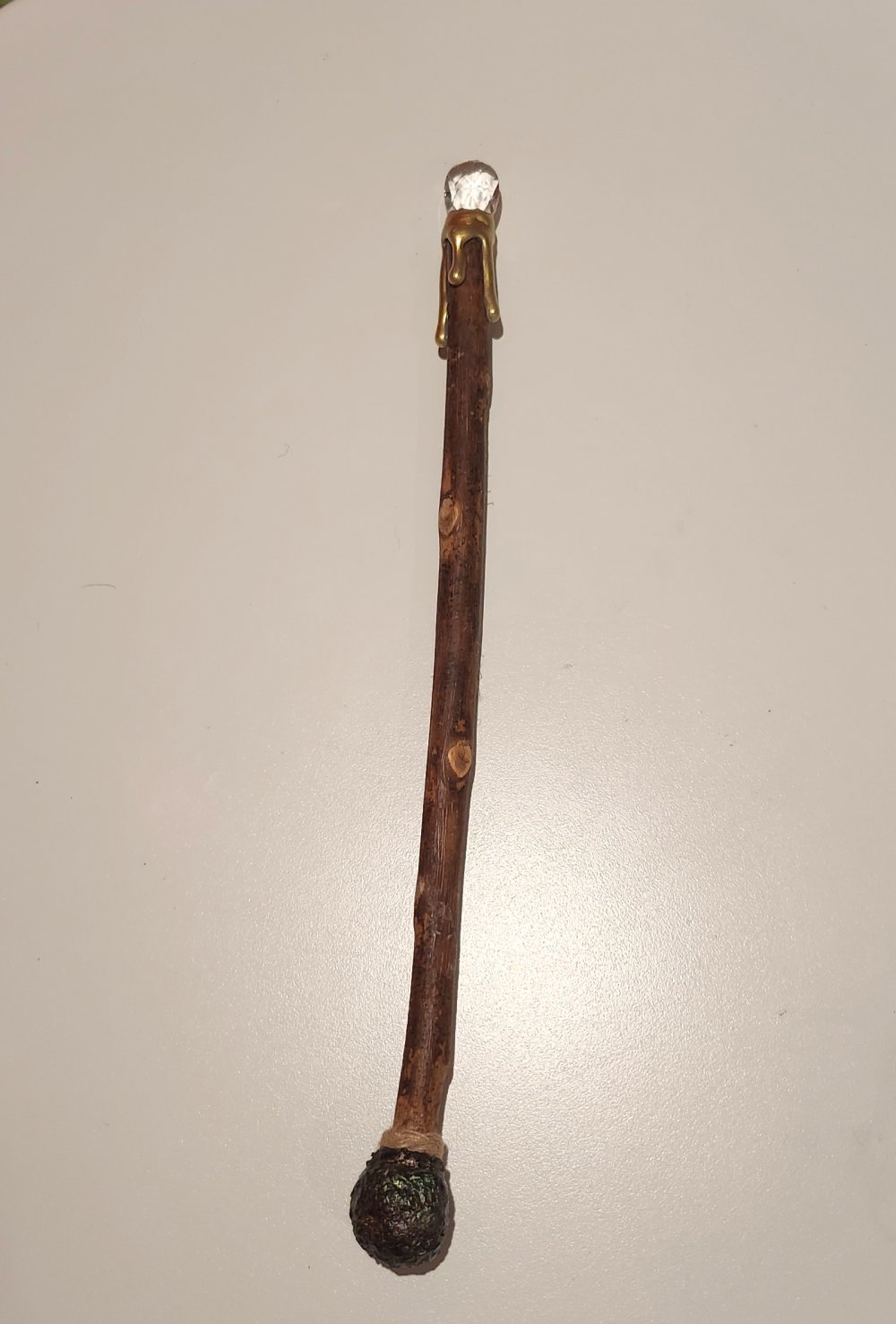 Baguette magique, manche en bois décoré finissant par une perle à reflet.