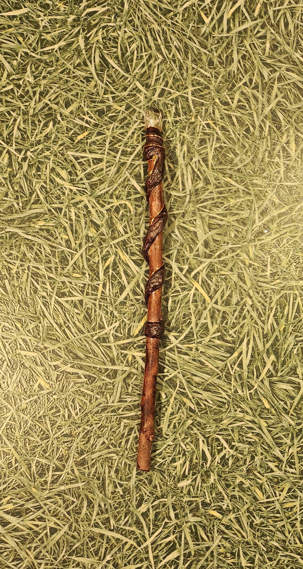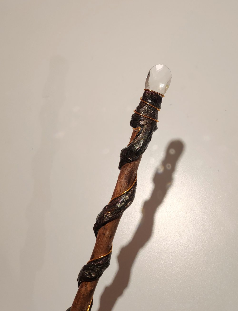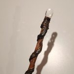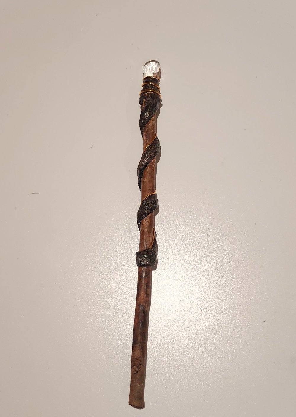 Baguette magique, manche en bois décorée finissant par une perle à reflet.