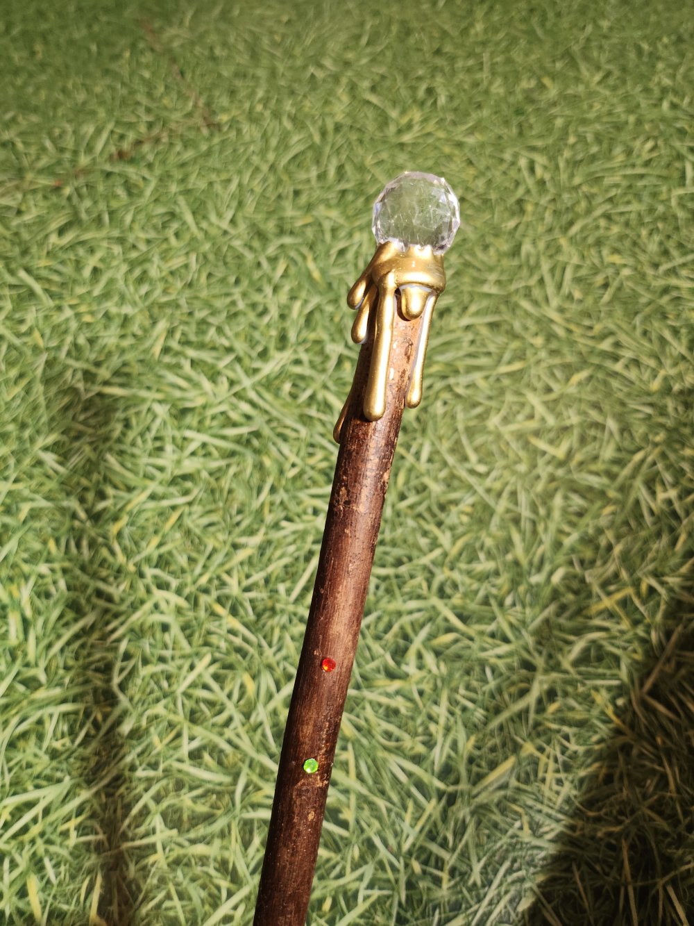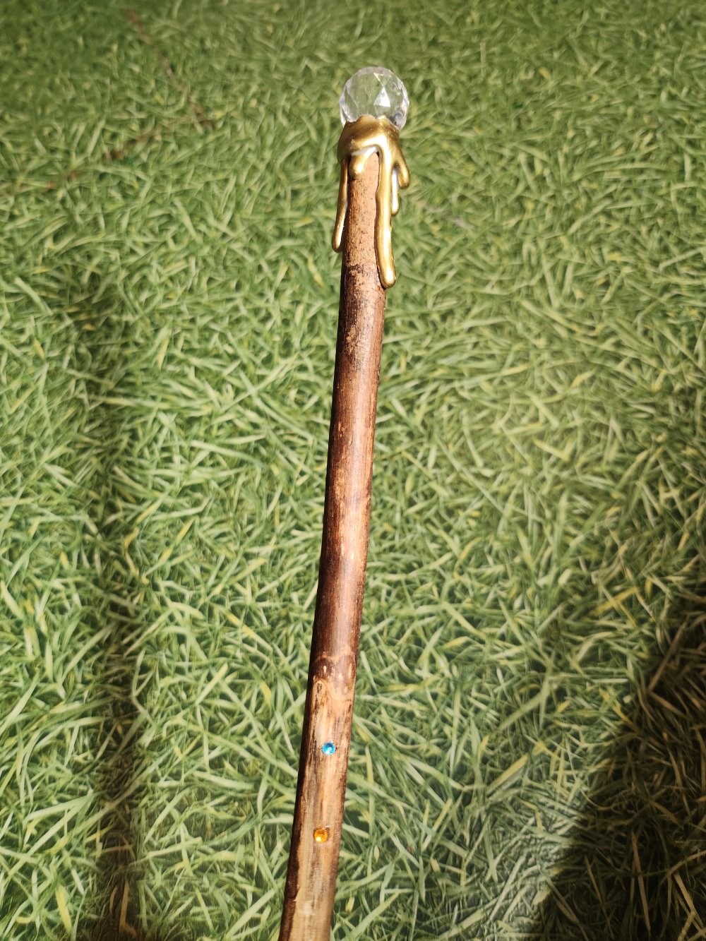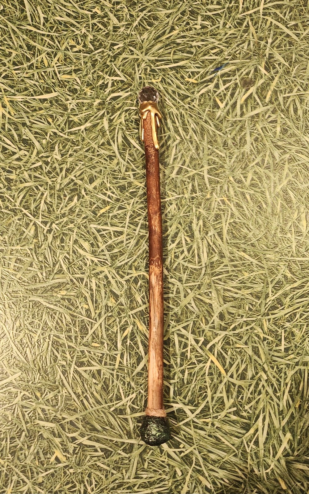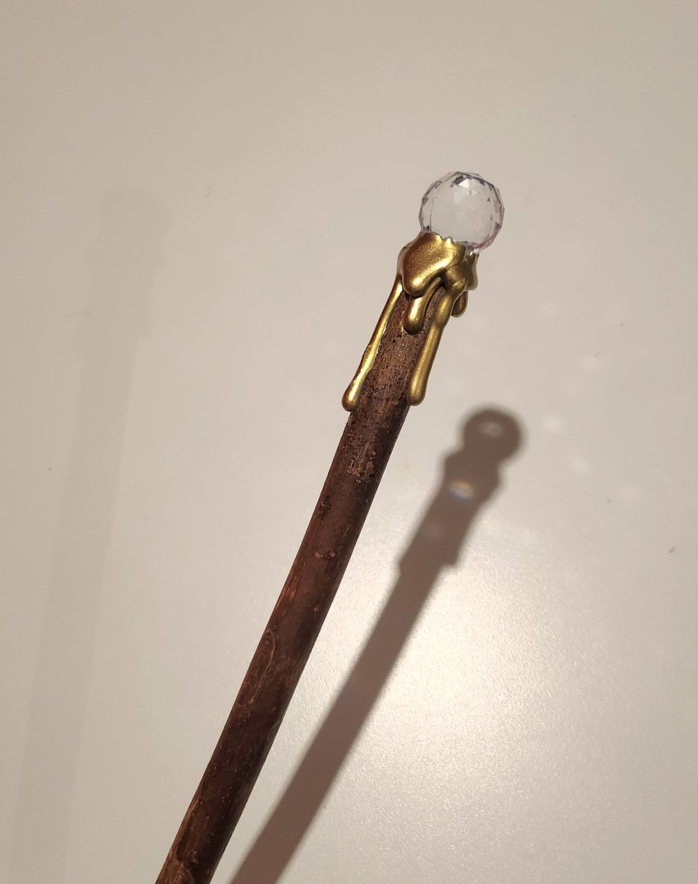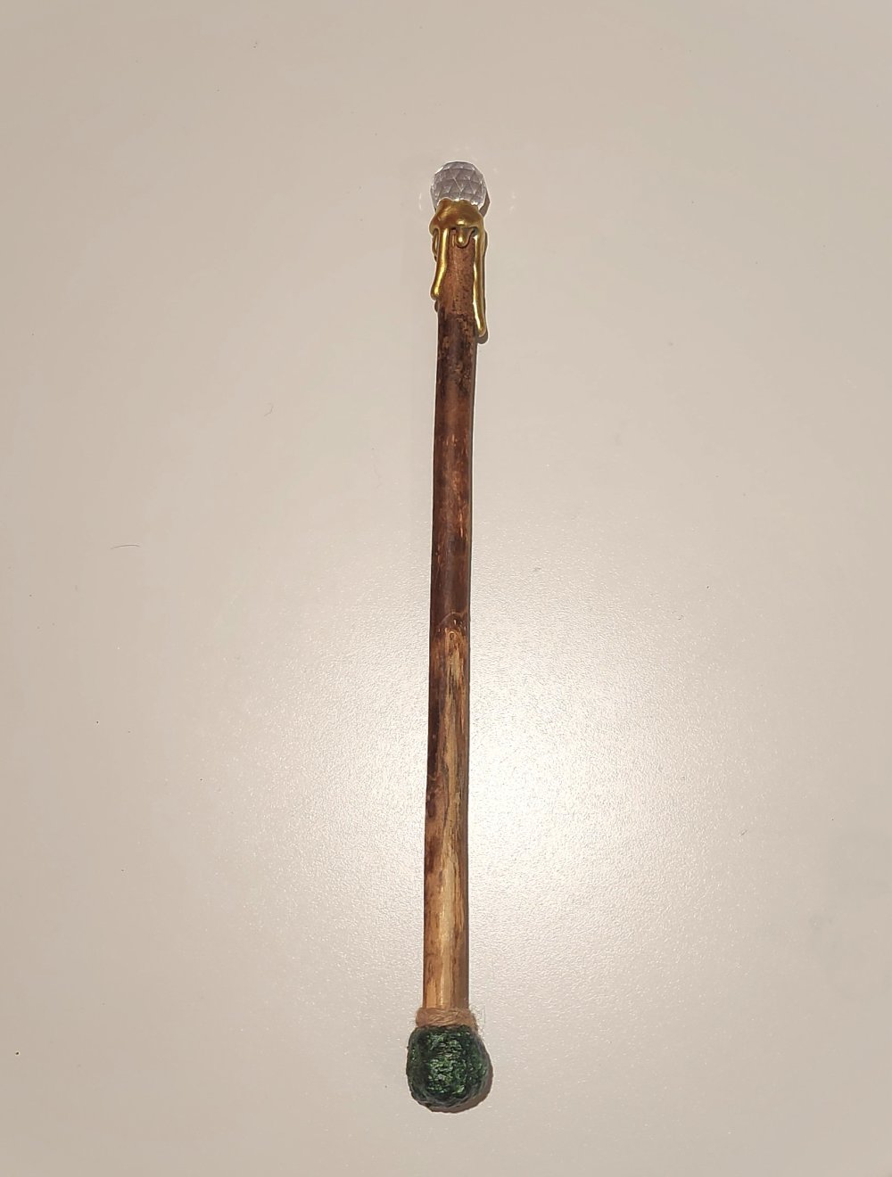 Baguette magique, manche en bois décoré finissant par une perle à reflet.