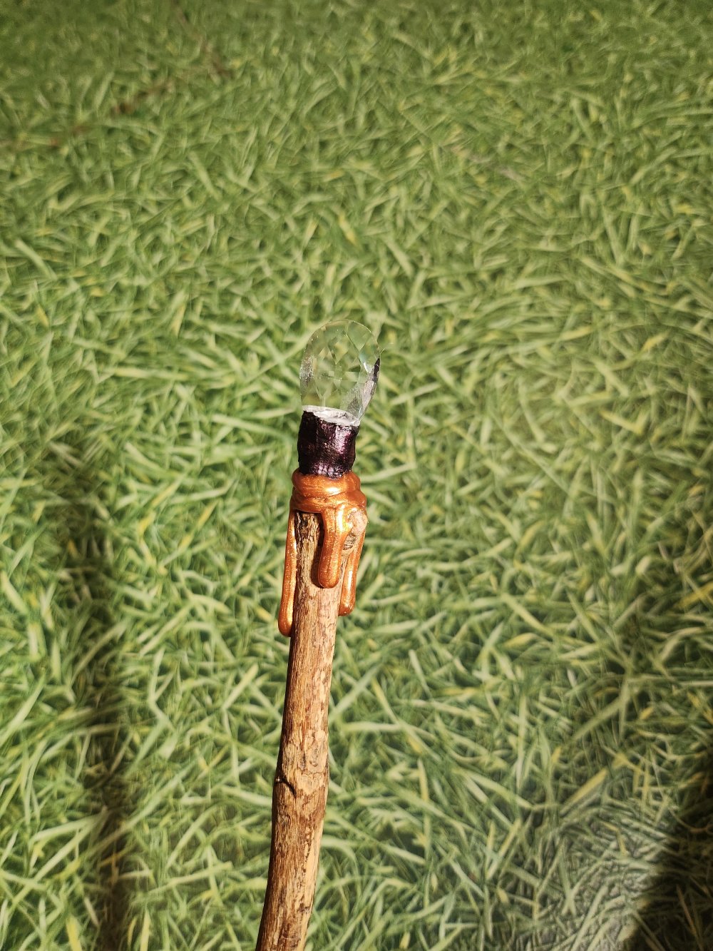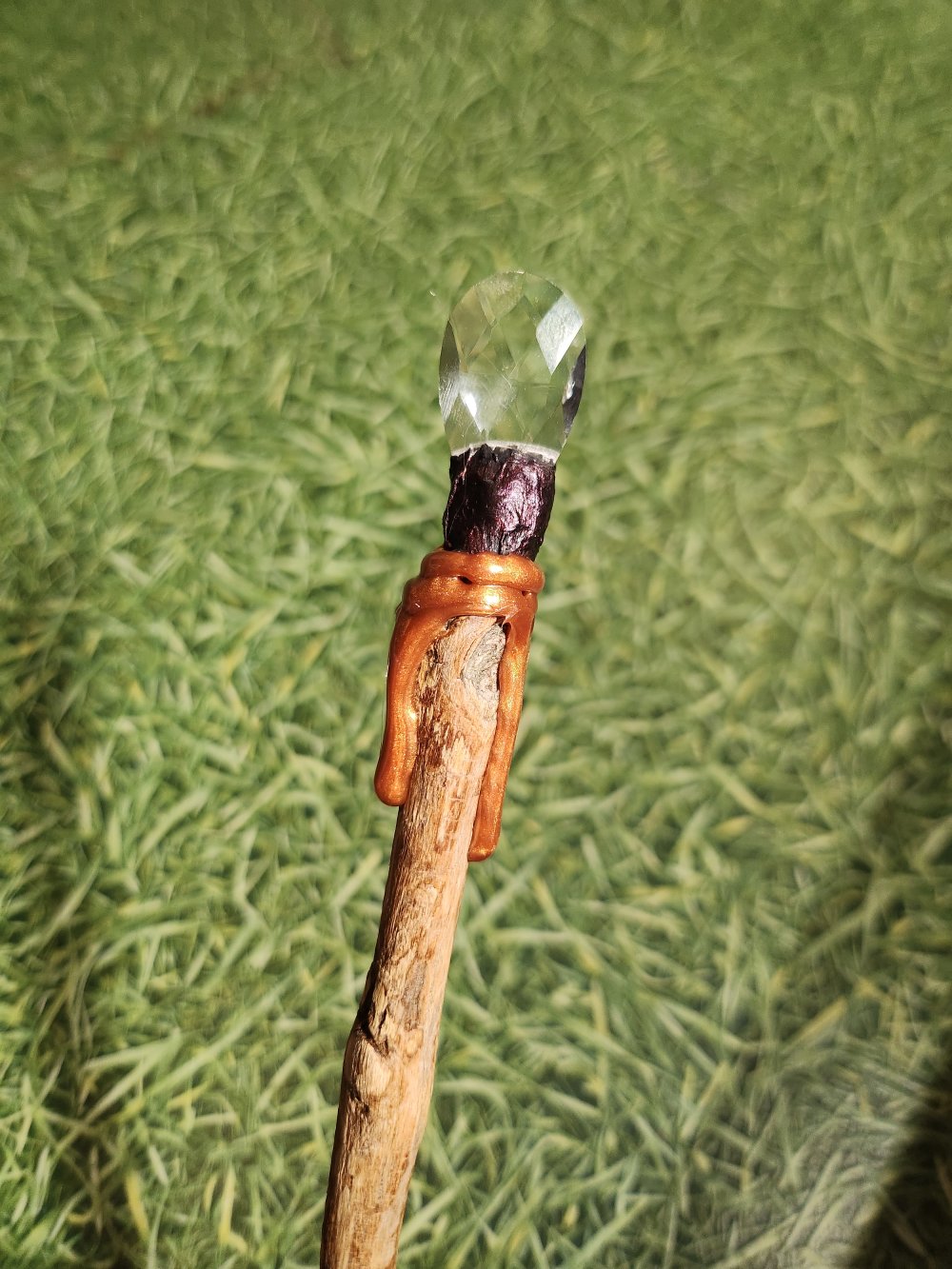 Baguette magique, manche en bois décoré finissant par une perle "cristal" à reflet