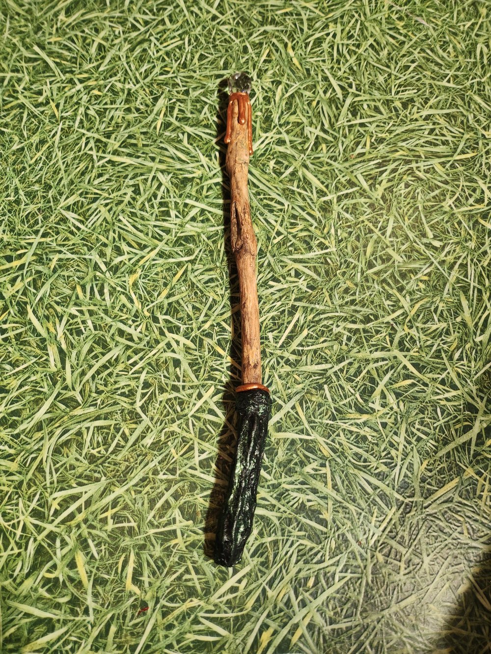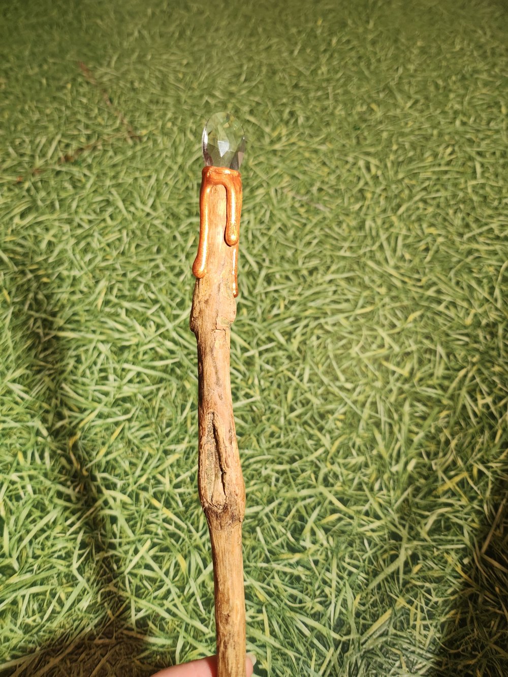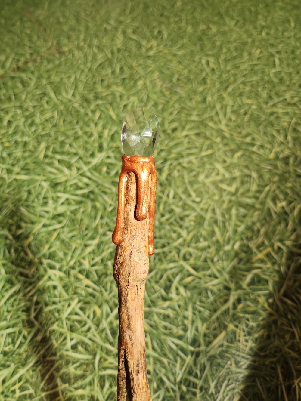 Baguette magique, manche en bois décoré finissant par une perle "cristal" à reflet