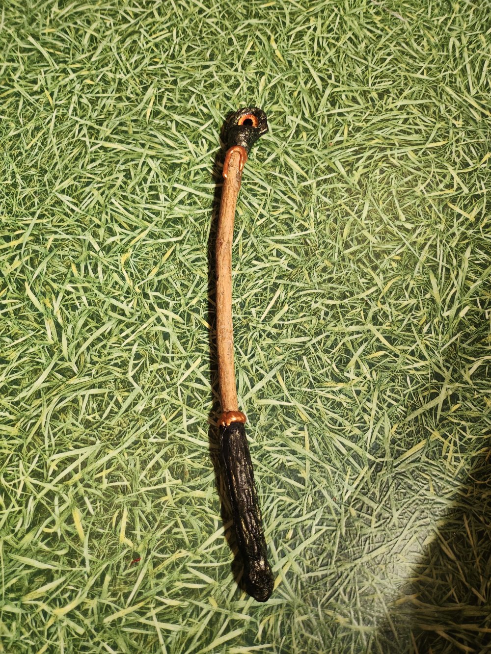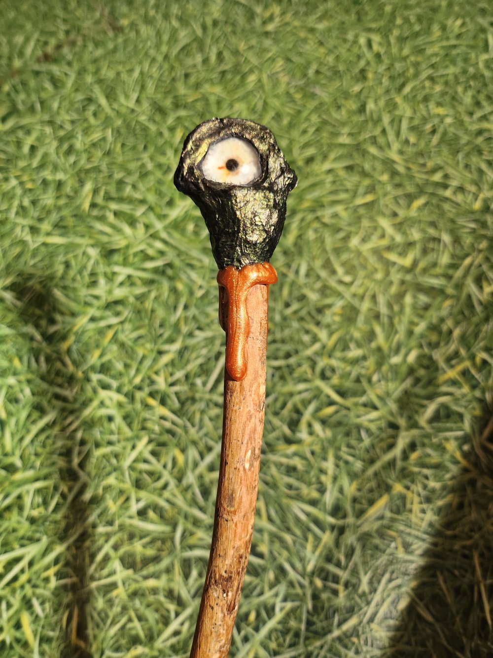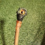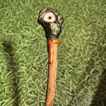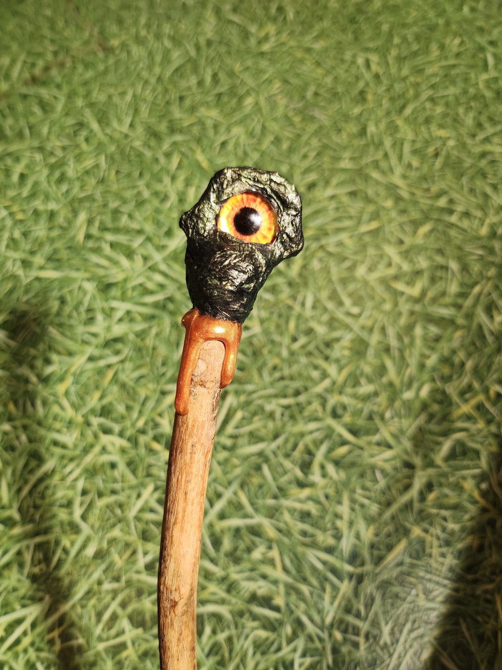 Baguette magique, manche en bois décoré finissant par un un oeil de couleur differente de chaque côté