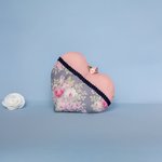 Ce cœur à suspendre associe un coton rose poudré à un tissu fleuri aux nuances de rose et de gris, pour une harmonie tendre et élégante. Son rembourrage en fibre polyester recyclée lui apporte une belle tenue tout en s’inscrivant dans une démarche plus responsable.