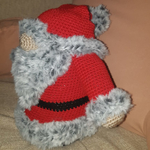 Cale-porte réalisé au crochet, fil acrylique, barbe et bordure du père Noël en fausse fourrure. Rempli de gravier, tête rembourrée. 29 cm de hauteur.