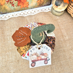 Étiquette : Étiquette en tissu imprimé "FRESH PUMPKINS", illustration de citrouilles (l'étiquette peut différer de la photo)