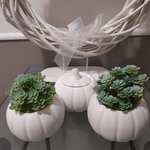Jolie citrouille en céramique qui vous réservera bien des surprises: bougie, pot, boîte à bijoux, jardinière, bougeoir, elle se prête à toutes vos fantaisies!