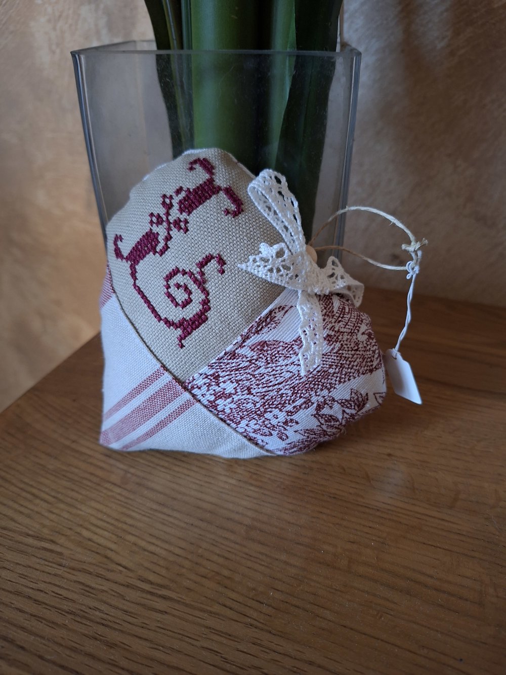Joli coeur entièrement fait main, idéal pour une décoration chaleureuse et vintage.