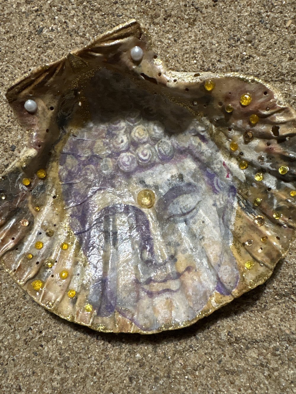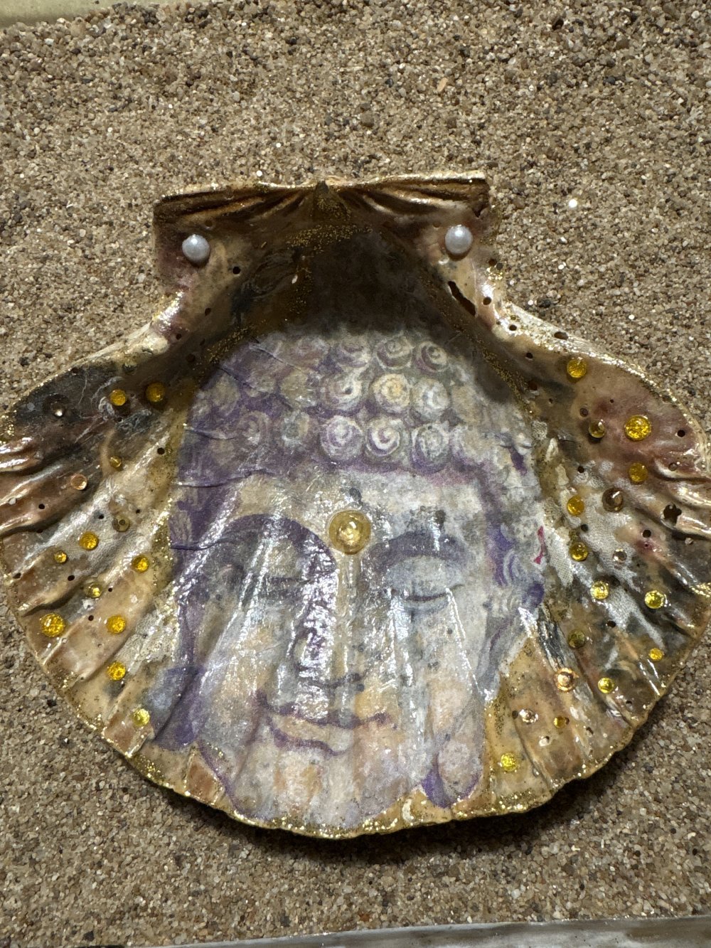 Incrustation de dessin Bouddha et cristaux couleur du soleil