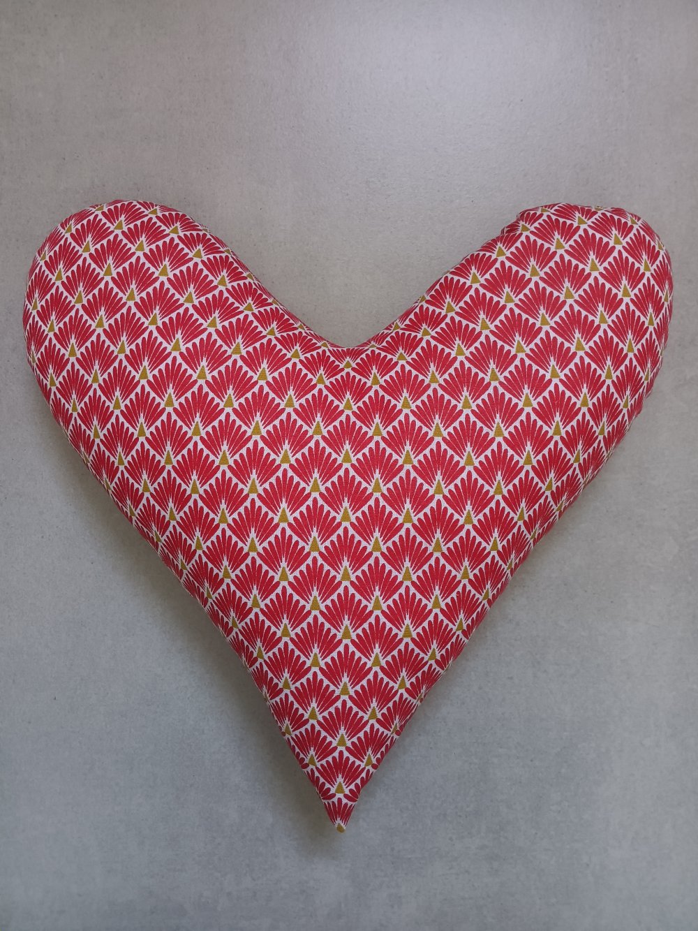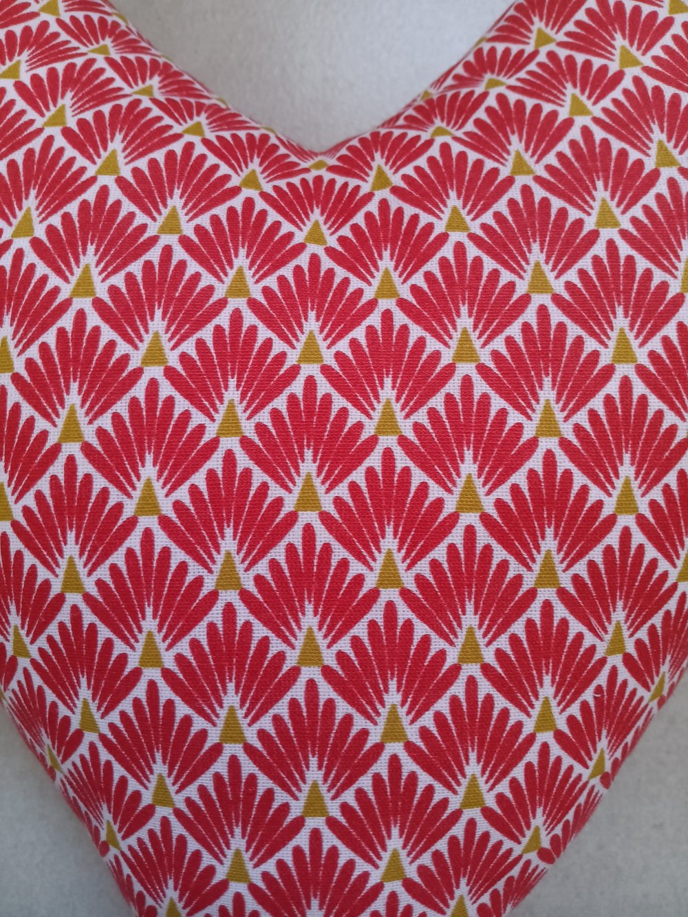 Coussin coeur éventails rouges - décoration ou post mastectomie (cancer du sein)