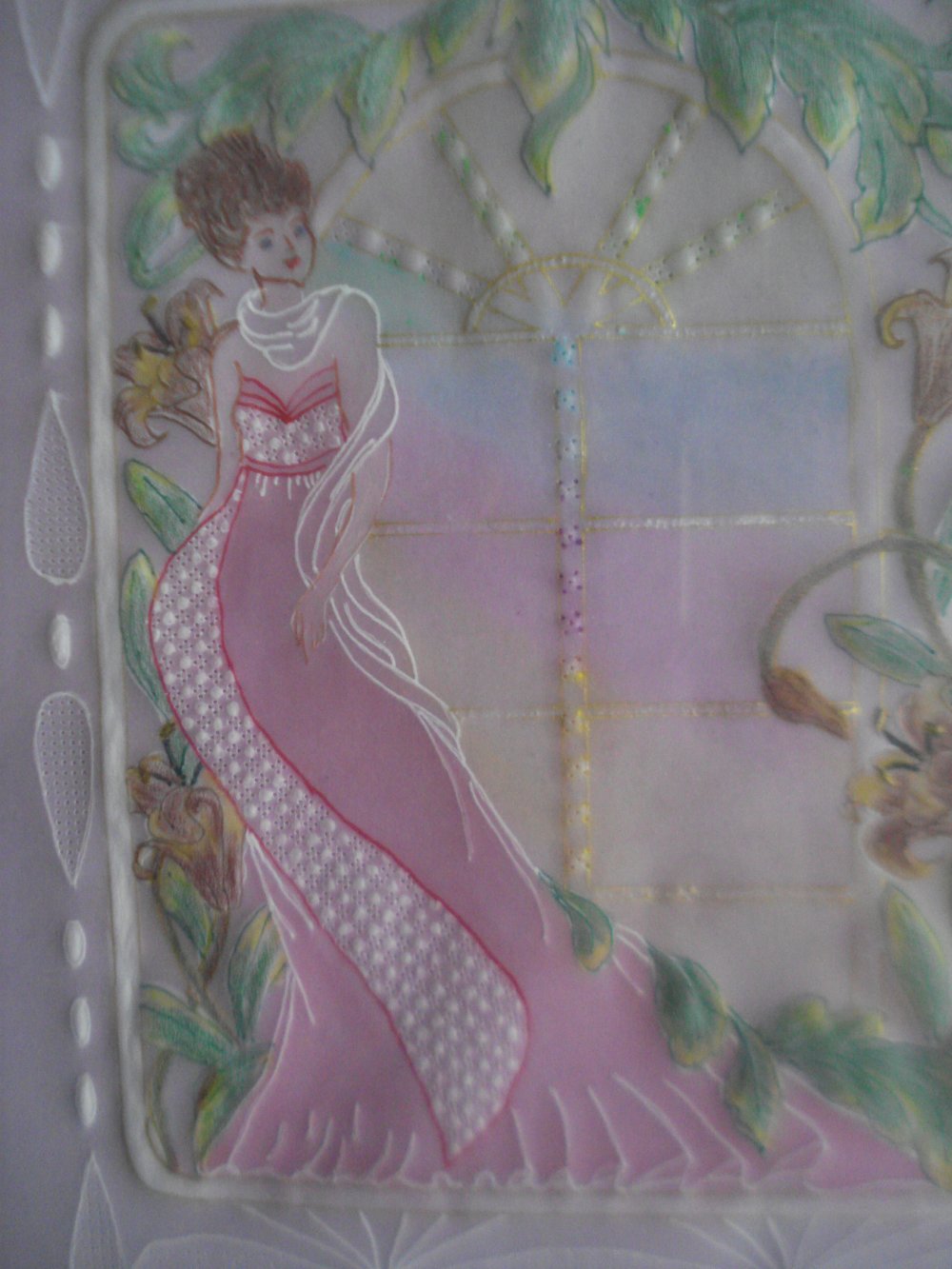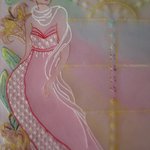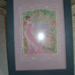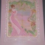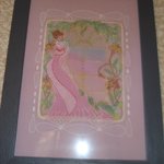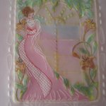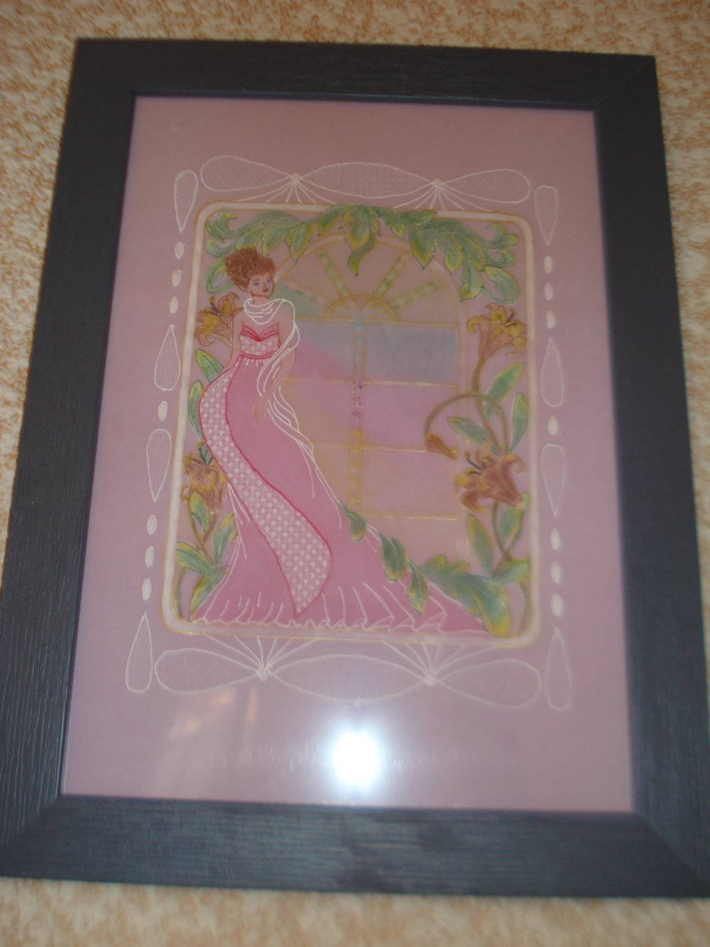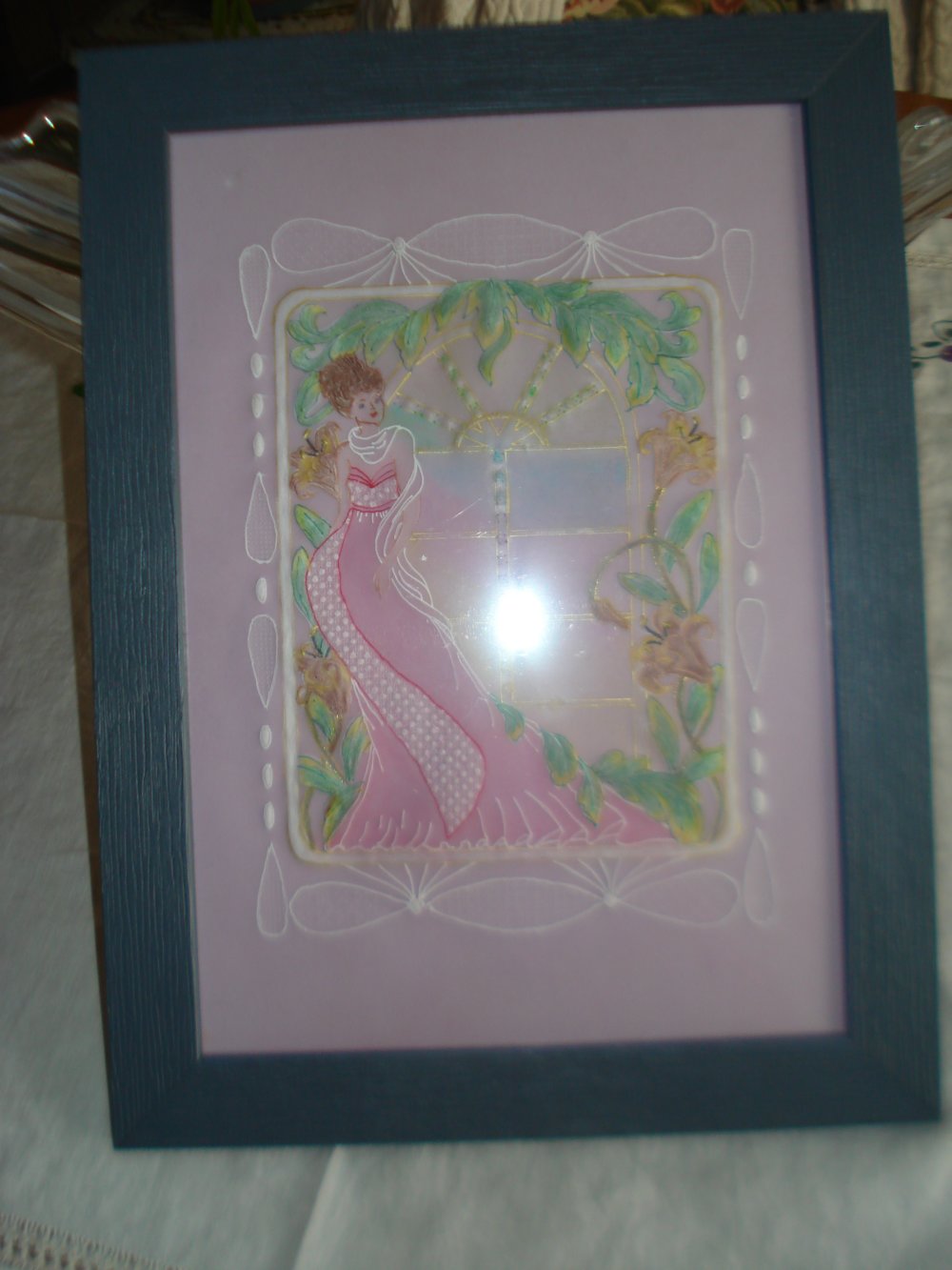 petit tableau représentant une femme style romantique sur fond d'arc en ciel
