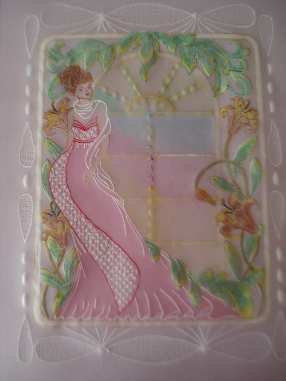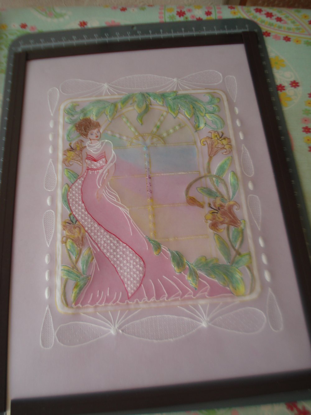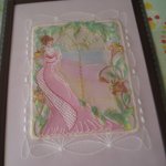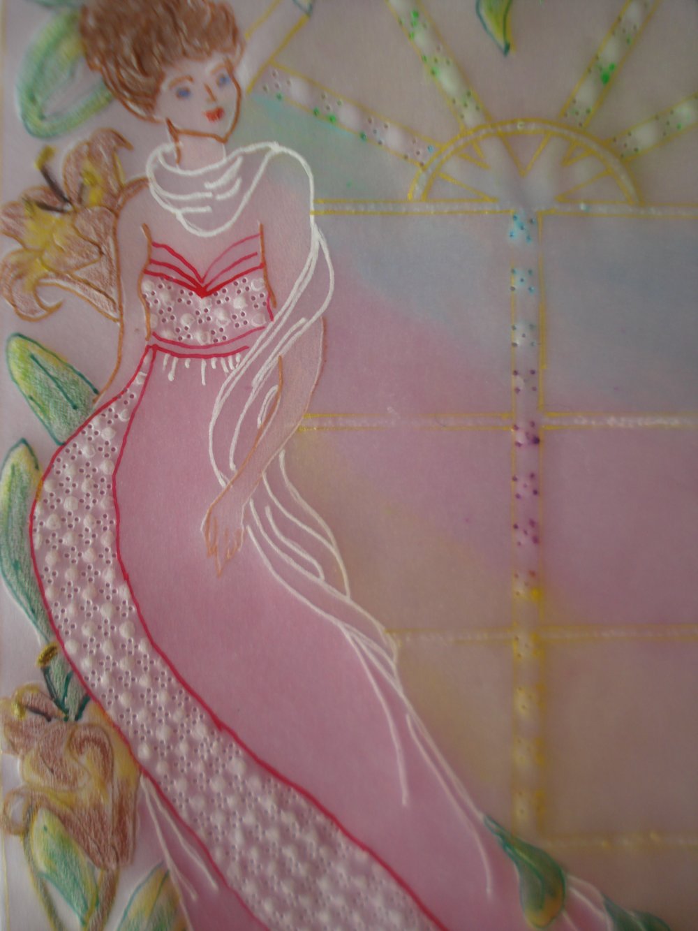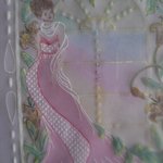 petit tableau représentant une femme style romantique sur fond d'arc en ciel
