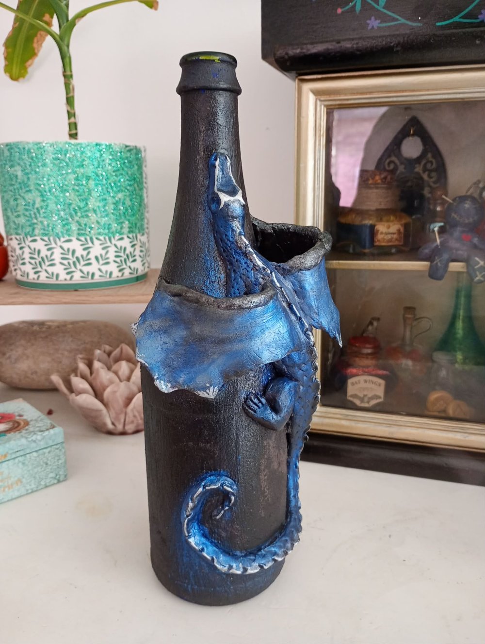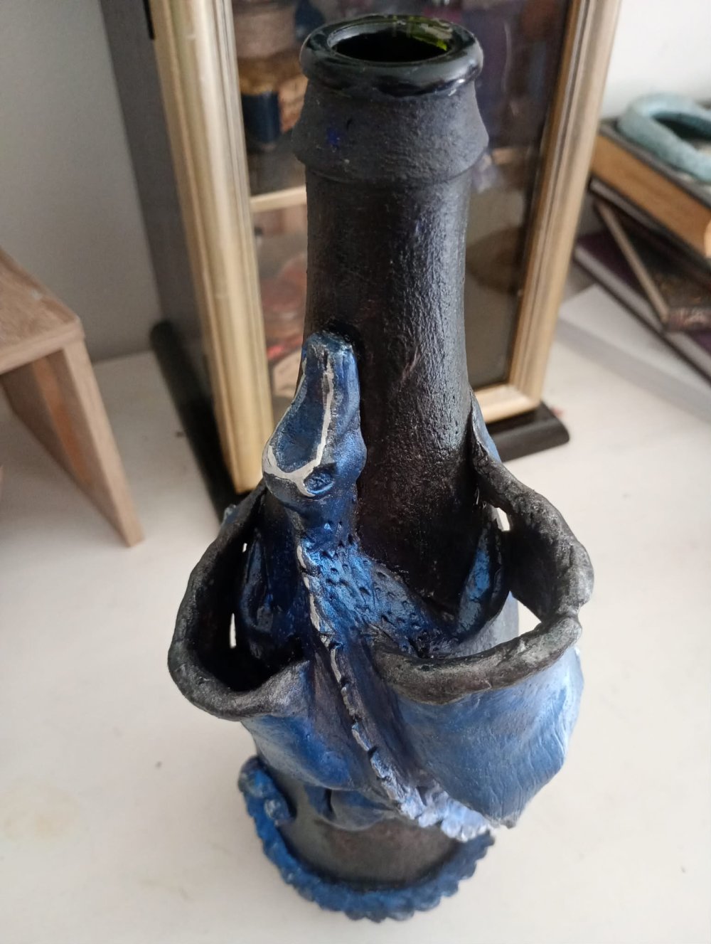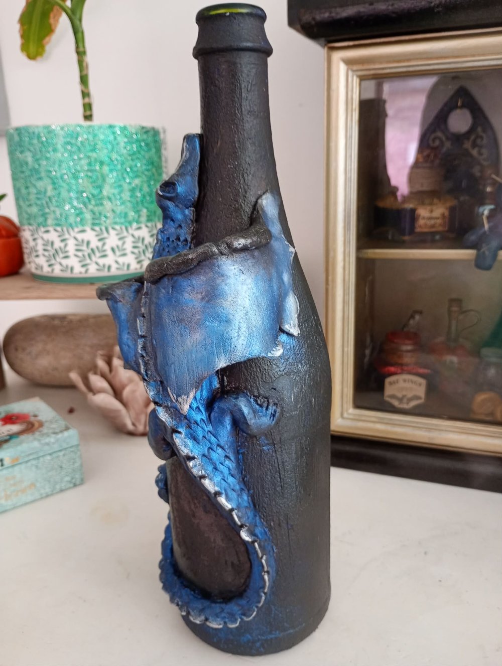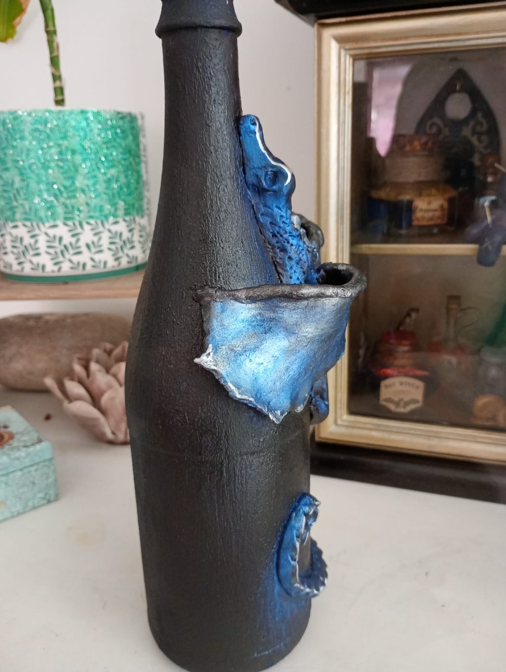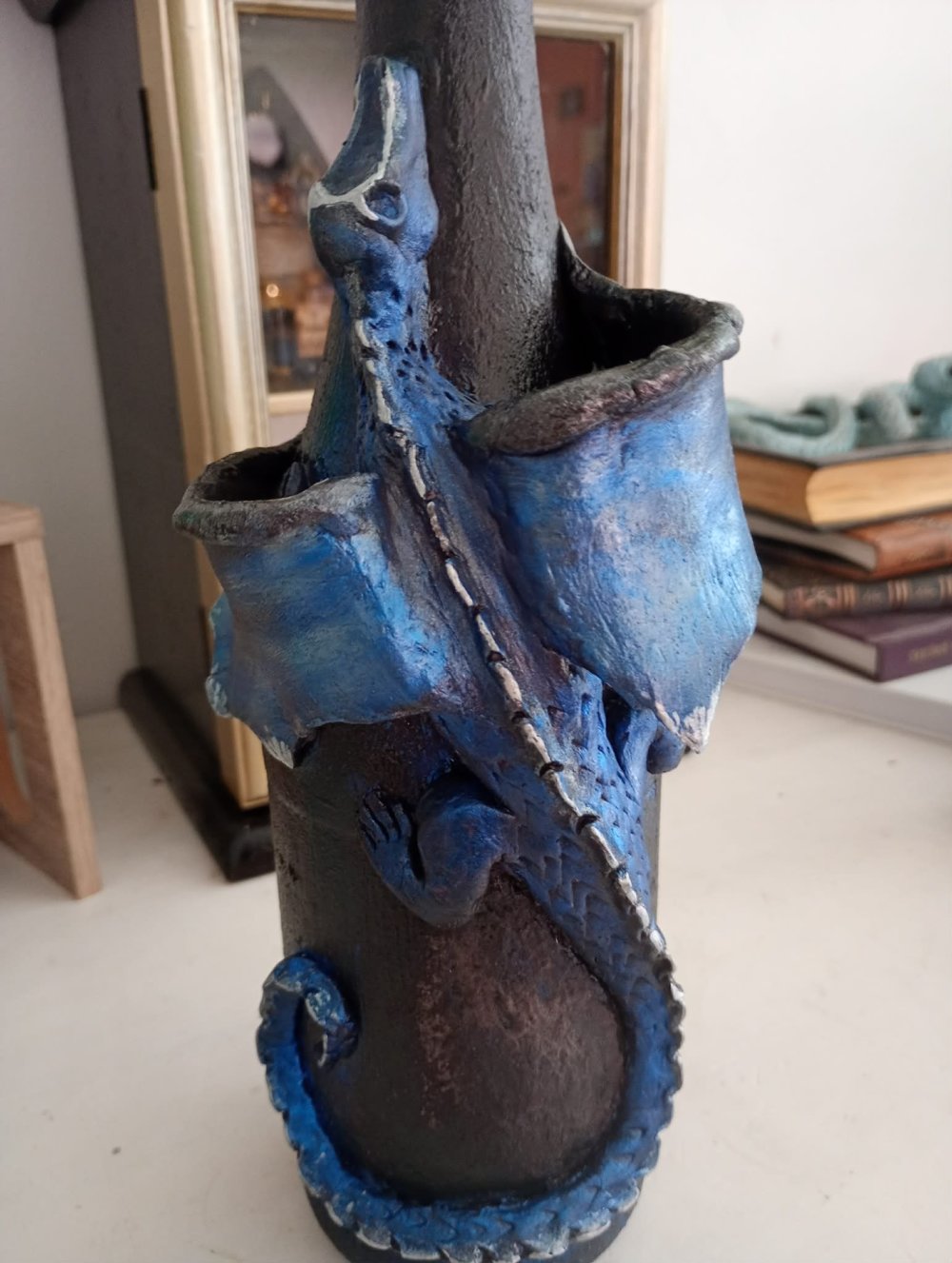 Bouteille décorée dragon bleu