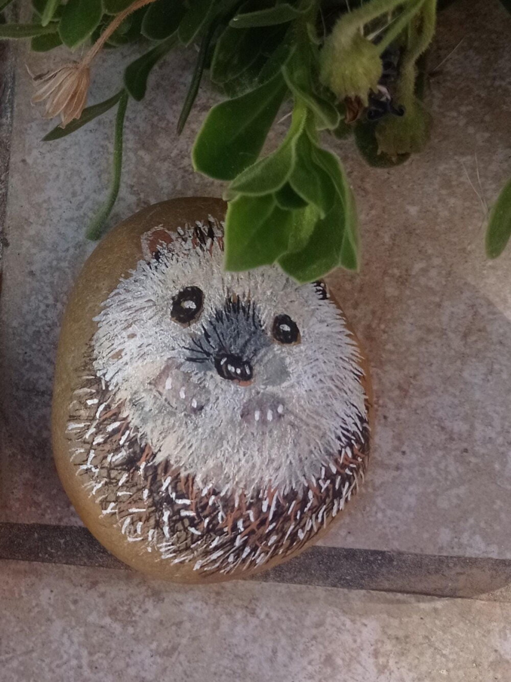 galet peint animaux galet herisson peint peinture sur galet hérisson peint à la main caillou décoratif pierre peinte animal Idée cadeau